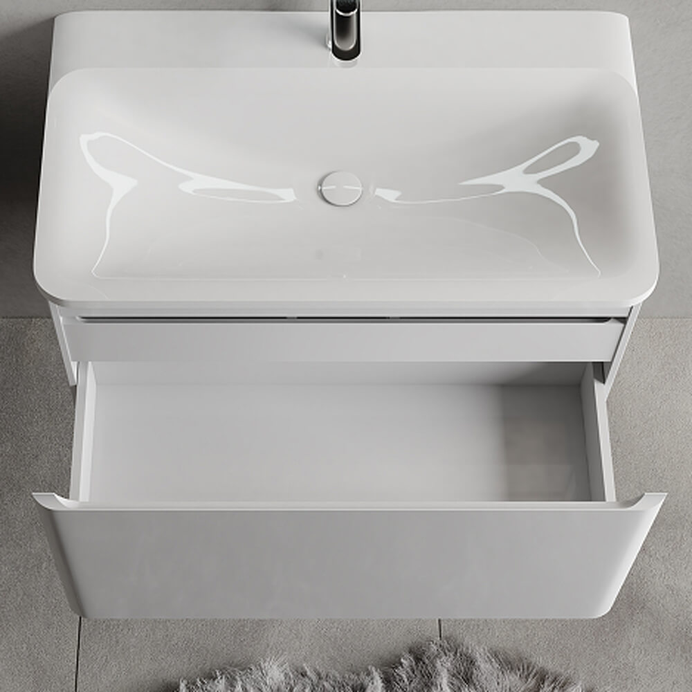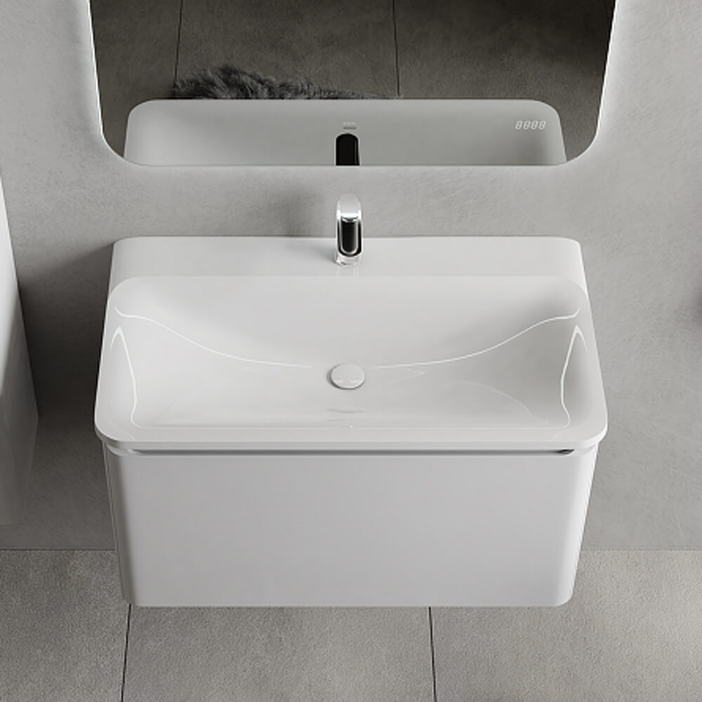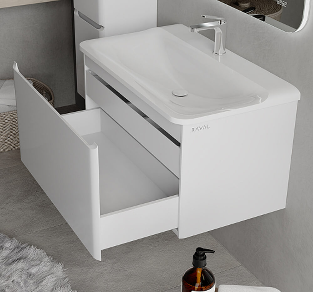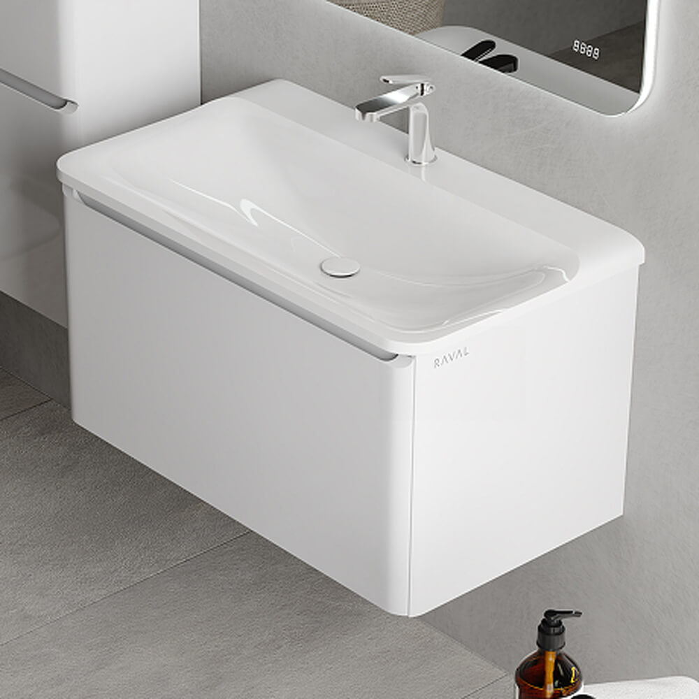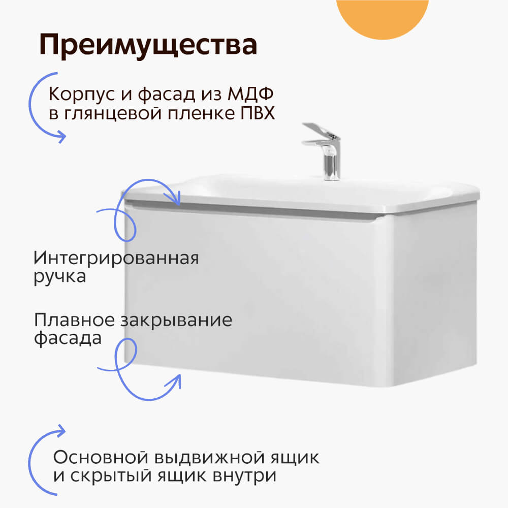 - Корпус и фасад тумбы выполнены из МДФ в белой глянцевой пленке ПВХ