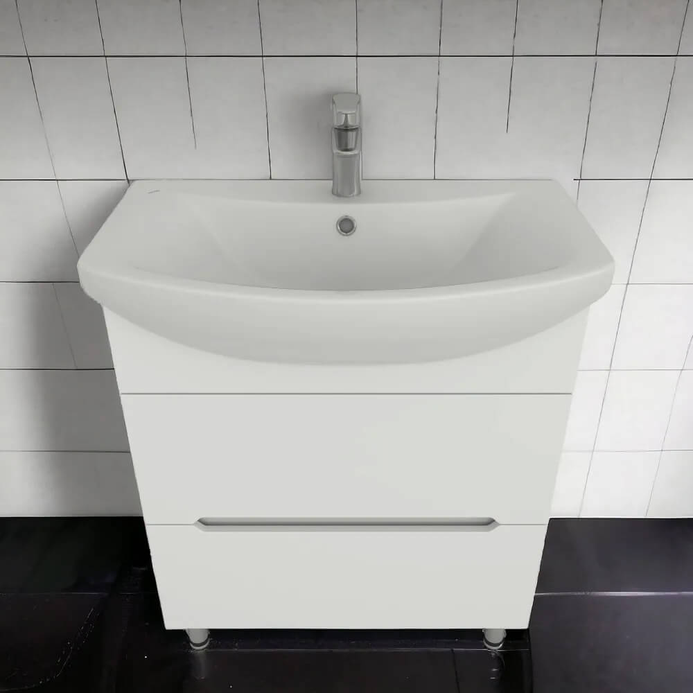- Ширина тумбы без раковины – 60,5 см, высота без ножек и раковины – 70 см, глубина – 31,6 см
