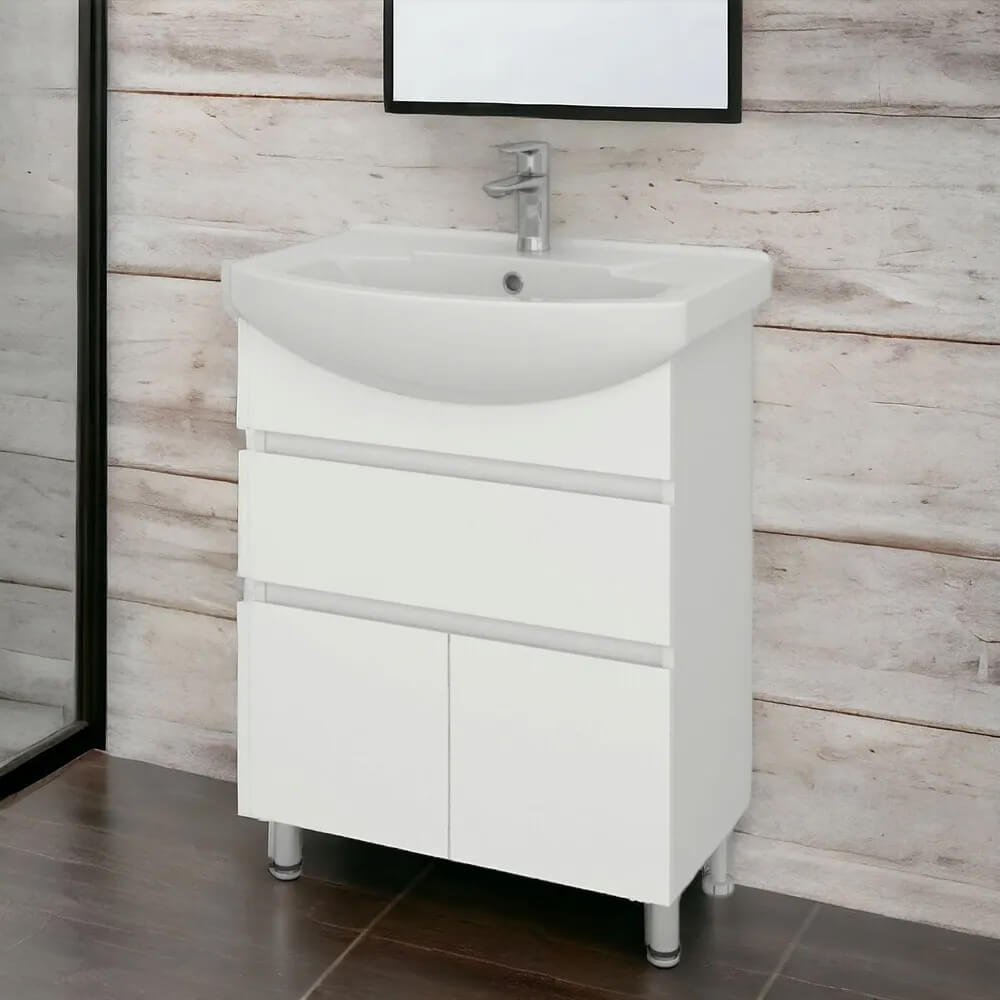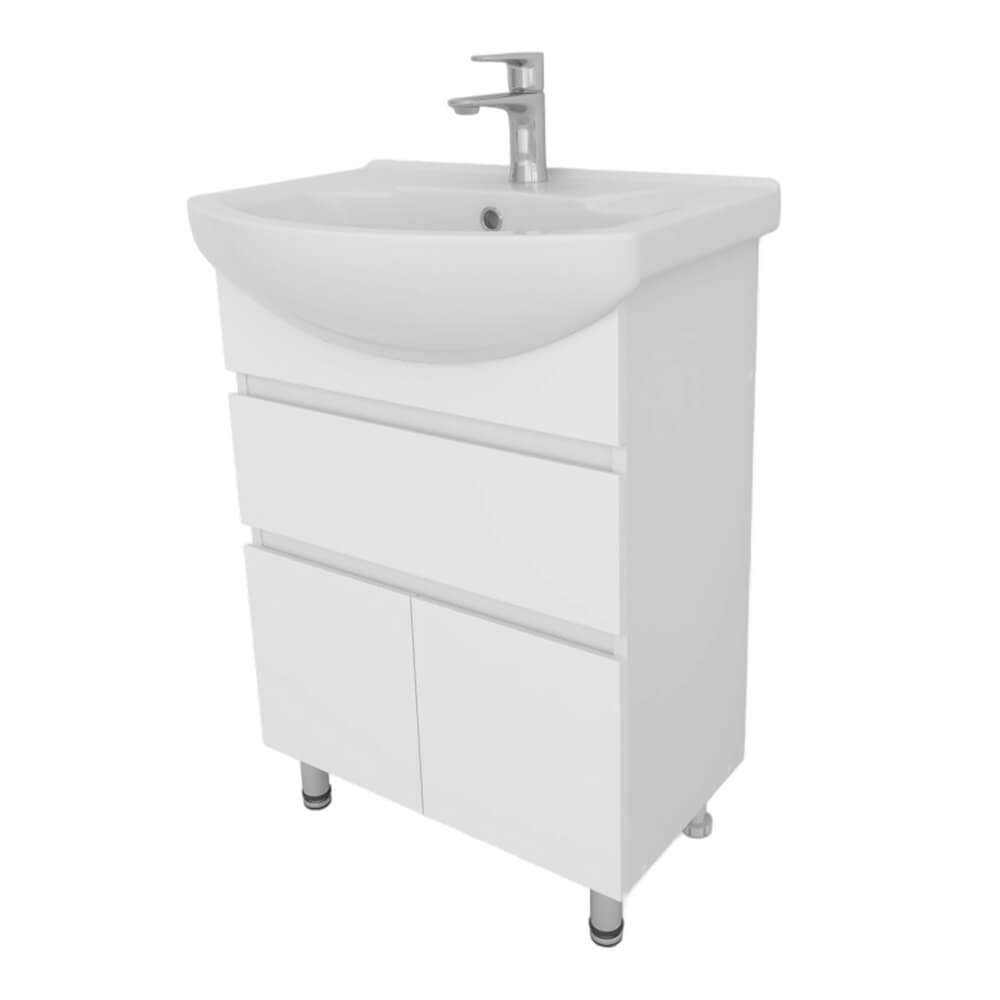 - Ширина тумбы без раковины – 67 см, высота без ножек и раковины – 70 см, глубина – 32 см