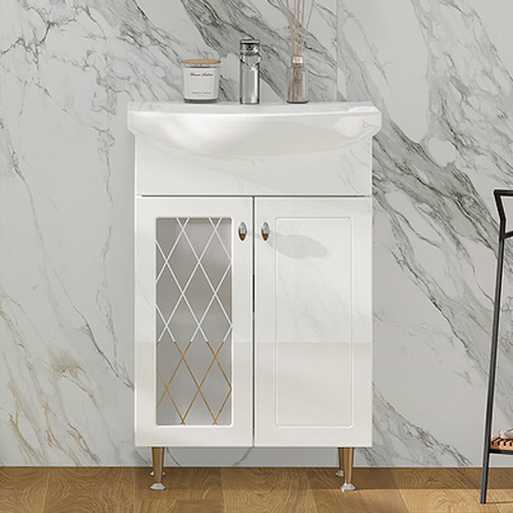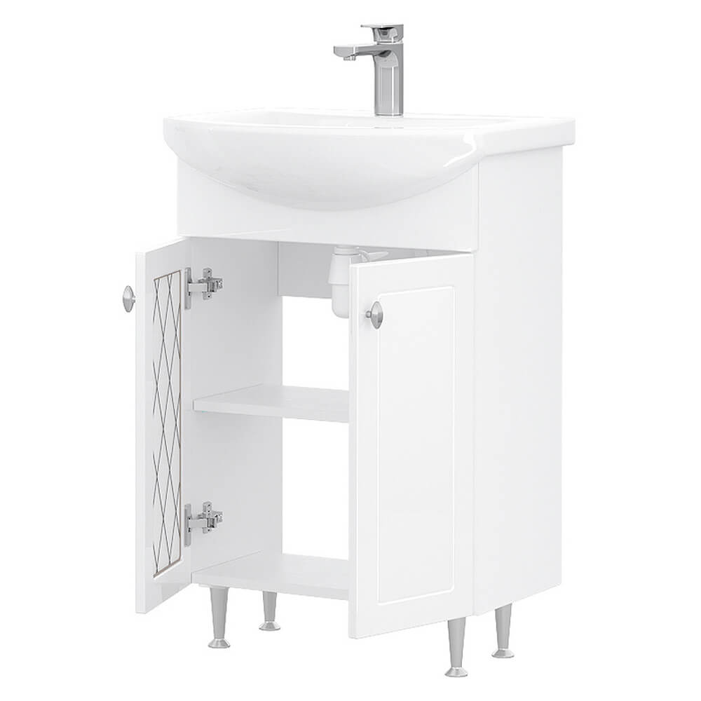 - Ширина тумбы без раковины – 51 см, высота без ножек и раковины – 70 см, глубина – 30,8 см