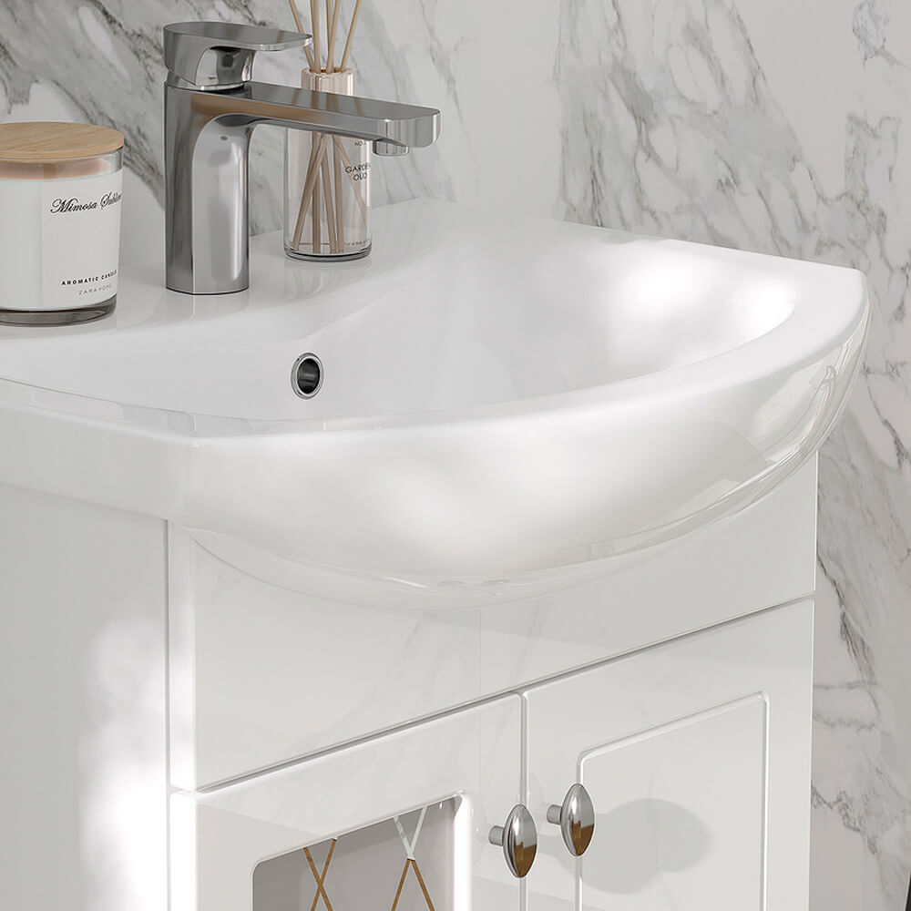 - Фасады тумбы из МДФ облицованы глянцевой пленкой ПВХ