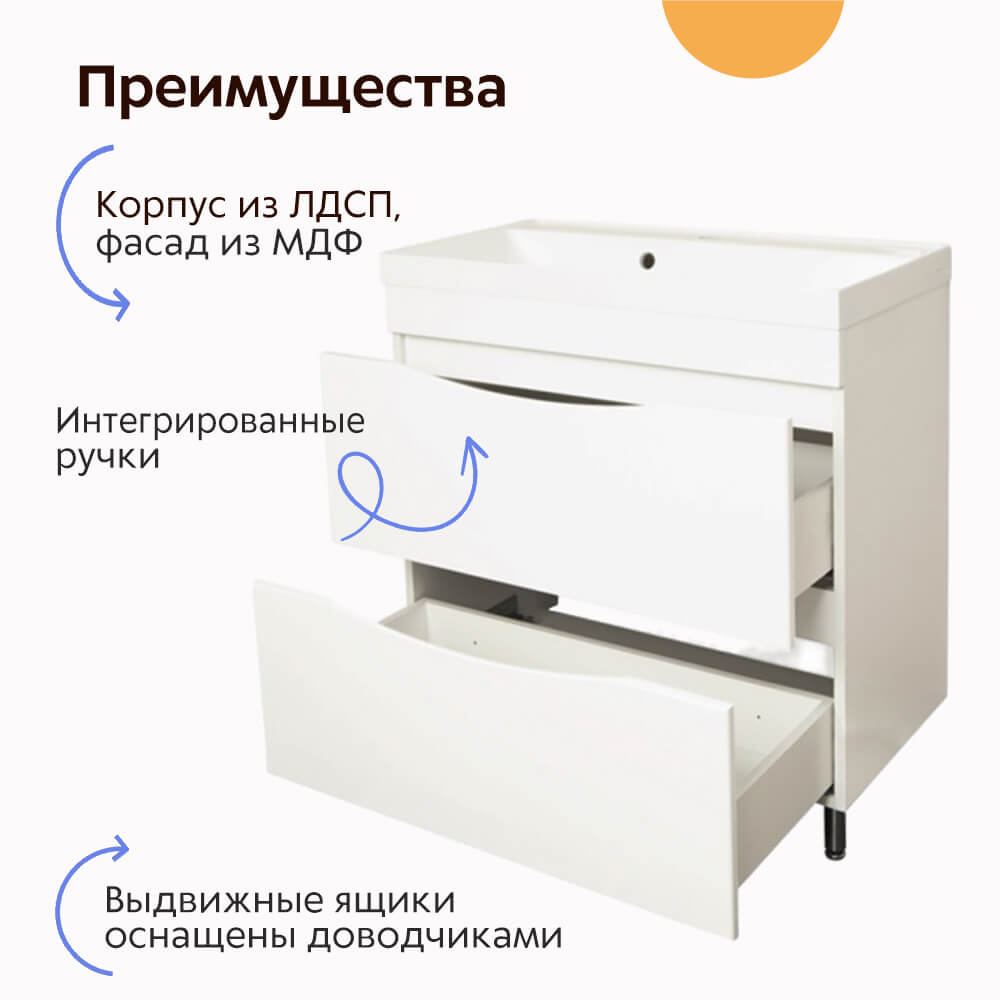 - Корпус: влагостойкая ЛДСП с лакокрасочным покрытием снаружи