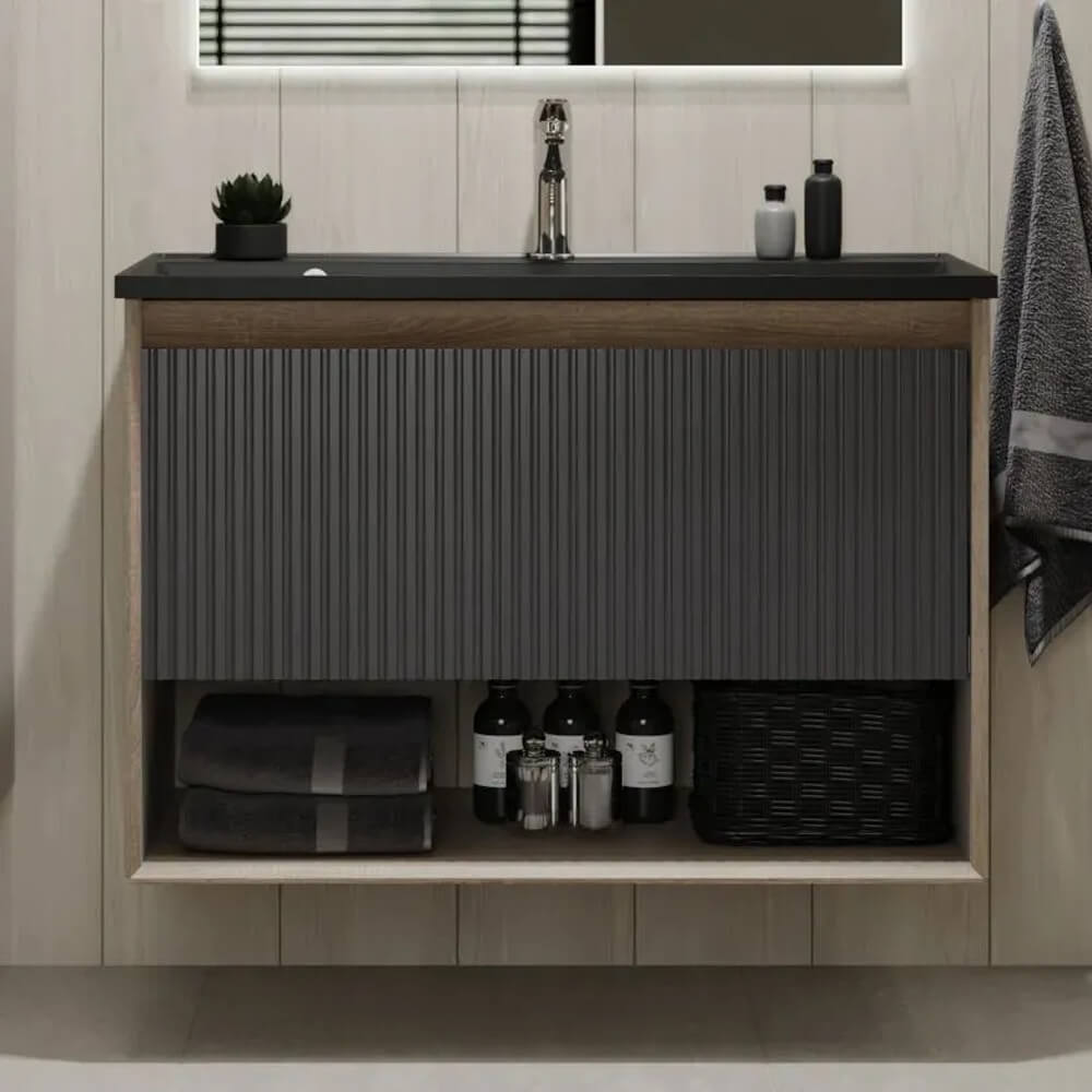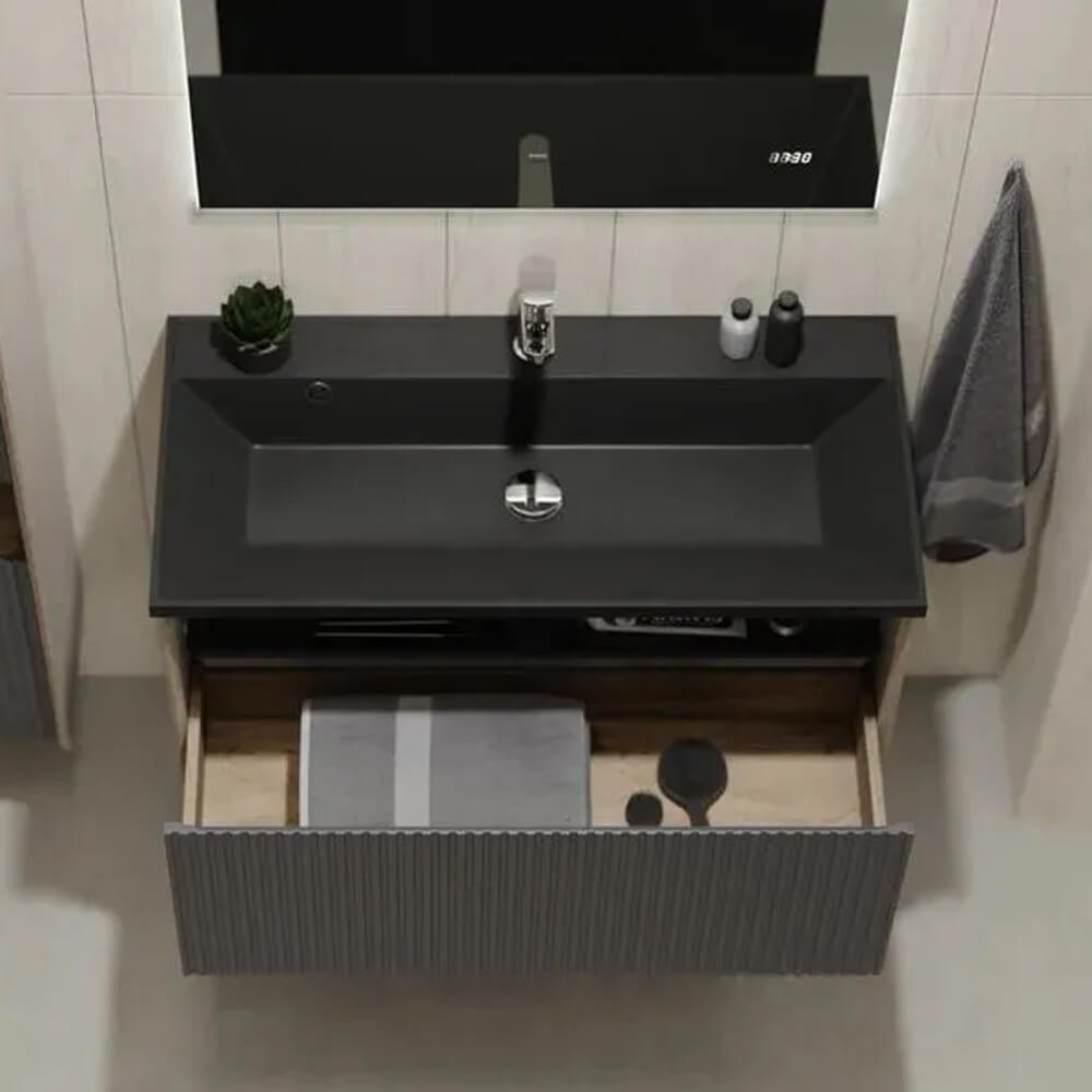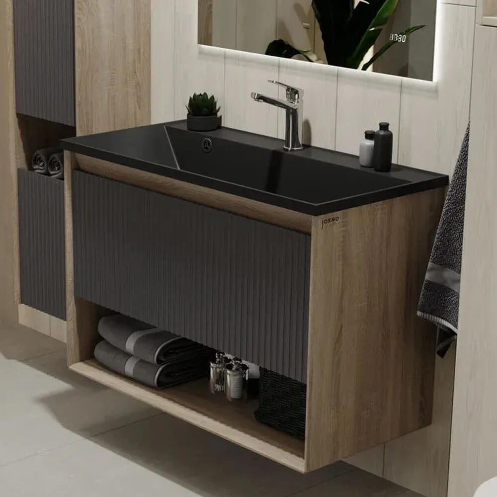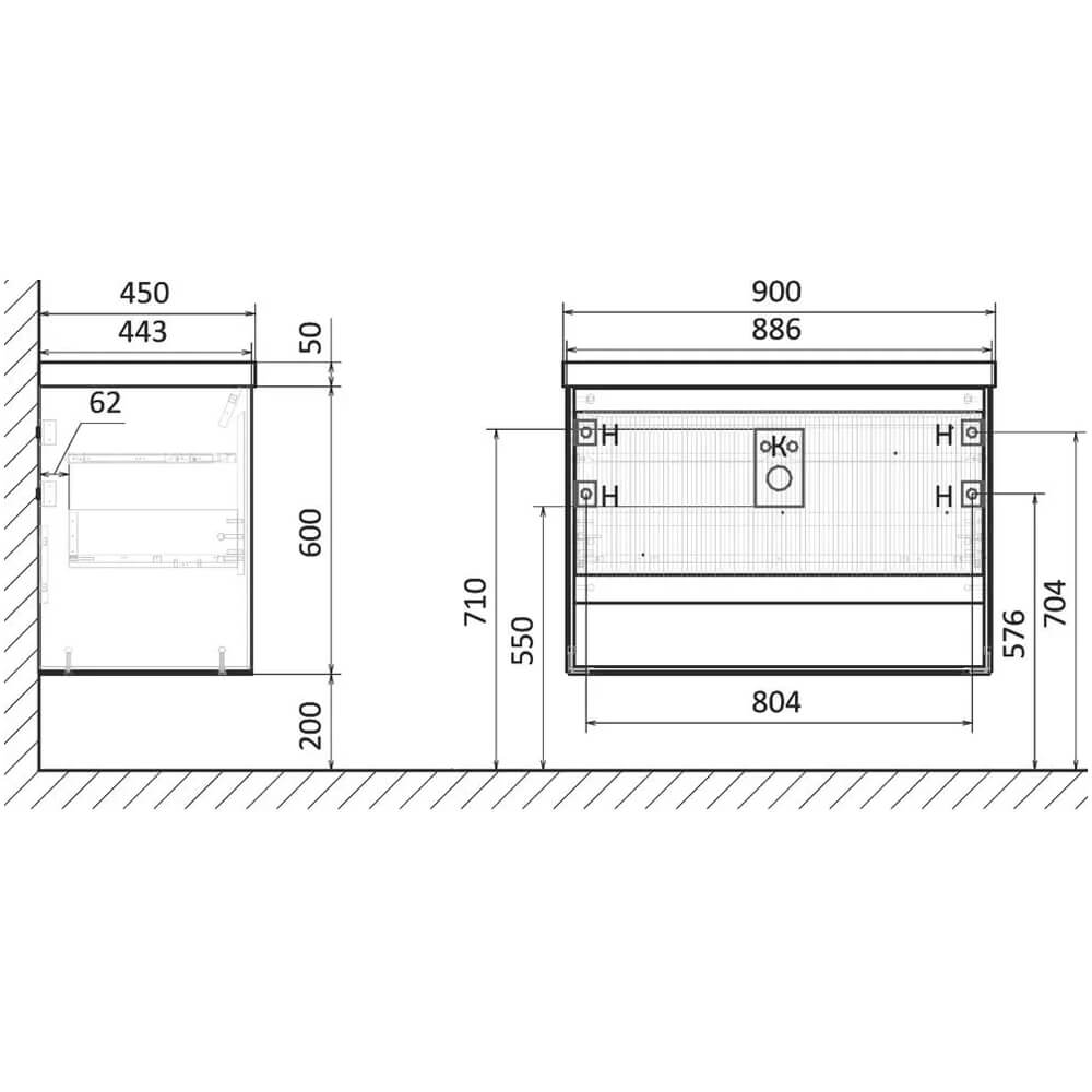 - Ширина тумбы без раковины – 88,6 см, высота без раковины – 60 см, глубина – 44,3 см