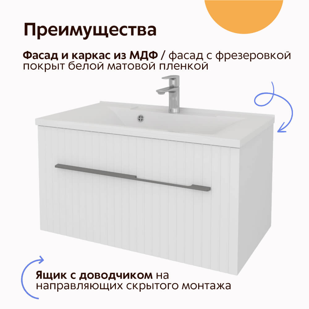 - Корпус и фасад тумбы изготовлены из высококачественной и устойчивой к влаге панели МДФ 16 мм