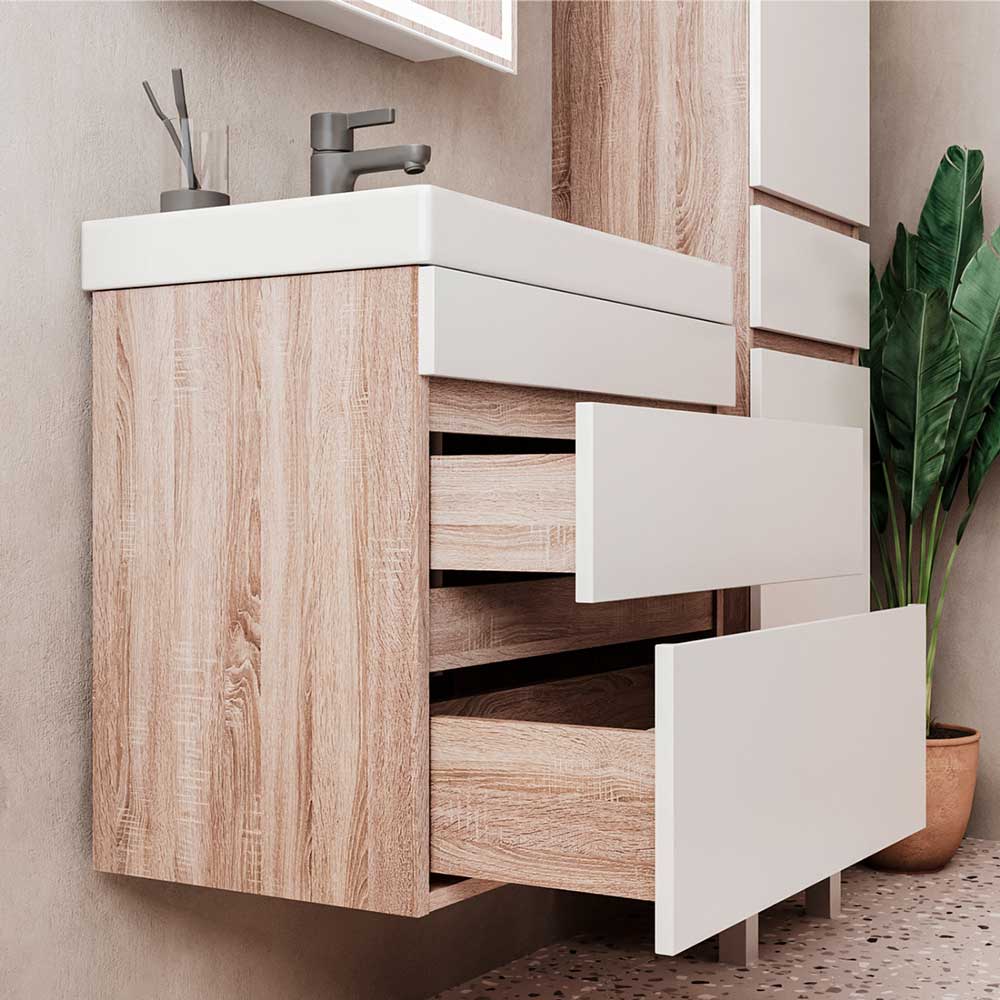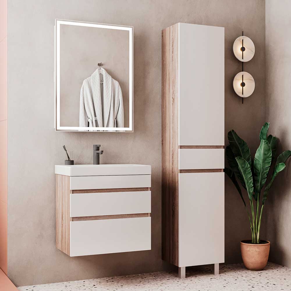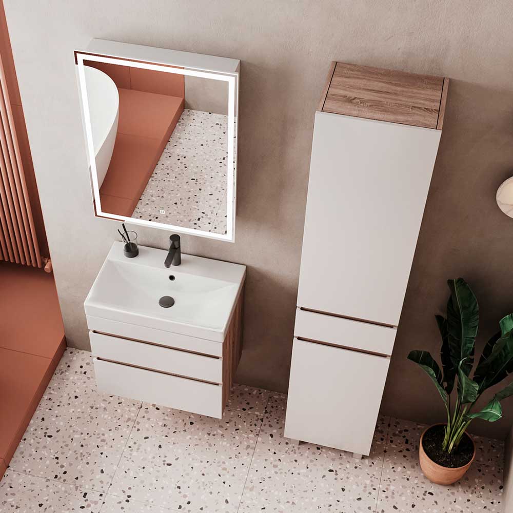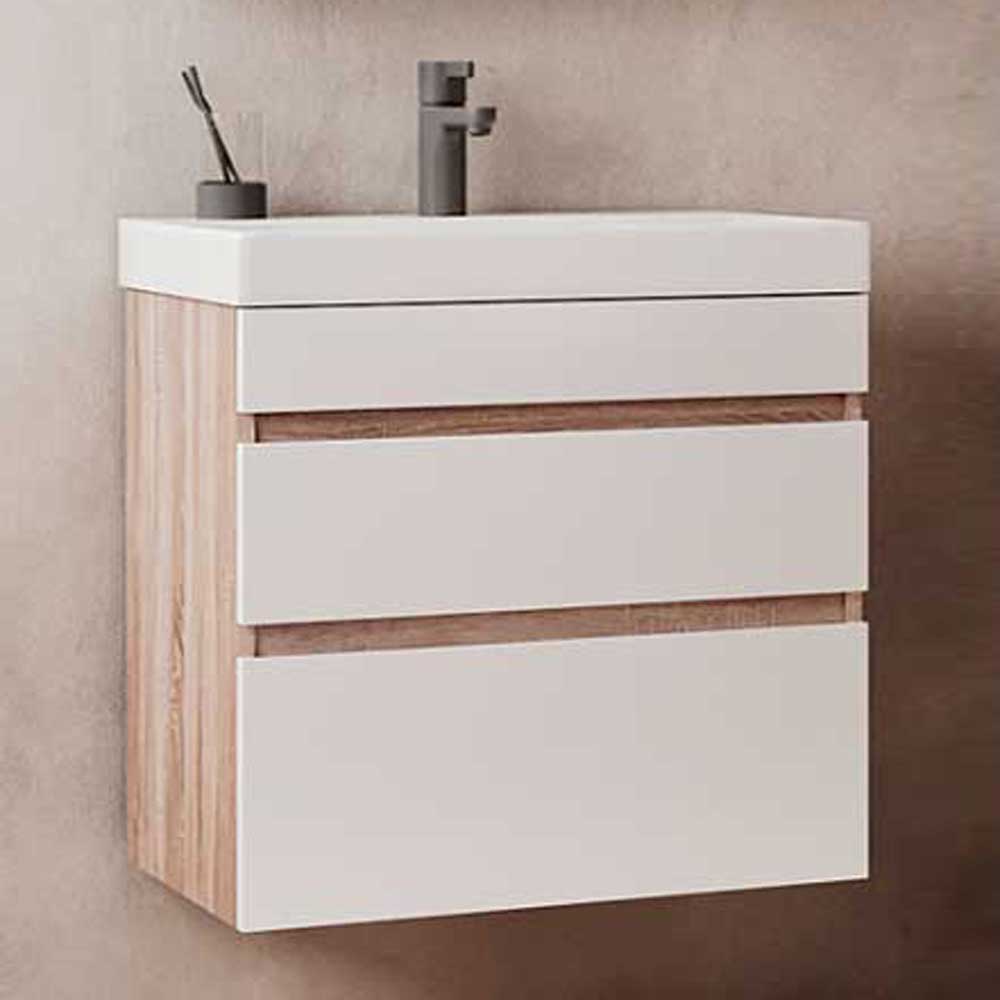 - Ширина тумбы без раковины – 69,4 см, высота без раковины – 54 см, глубина – 38,6 см
