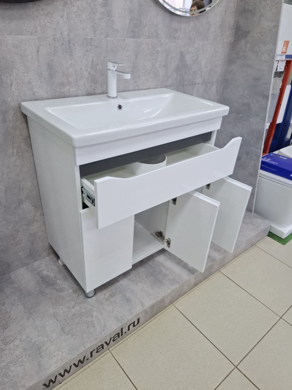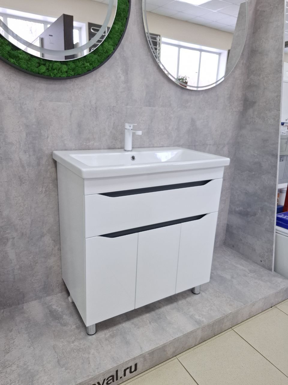 —Тумба в ванную комнату INTEGRO 80 Белый/встав.Антрацит под умывальник СОМО 80 (1ящ + 3дв)