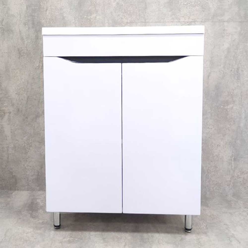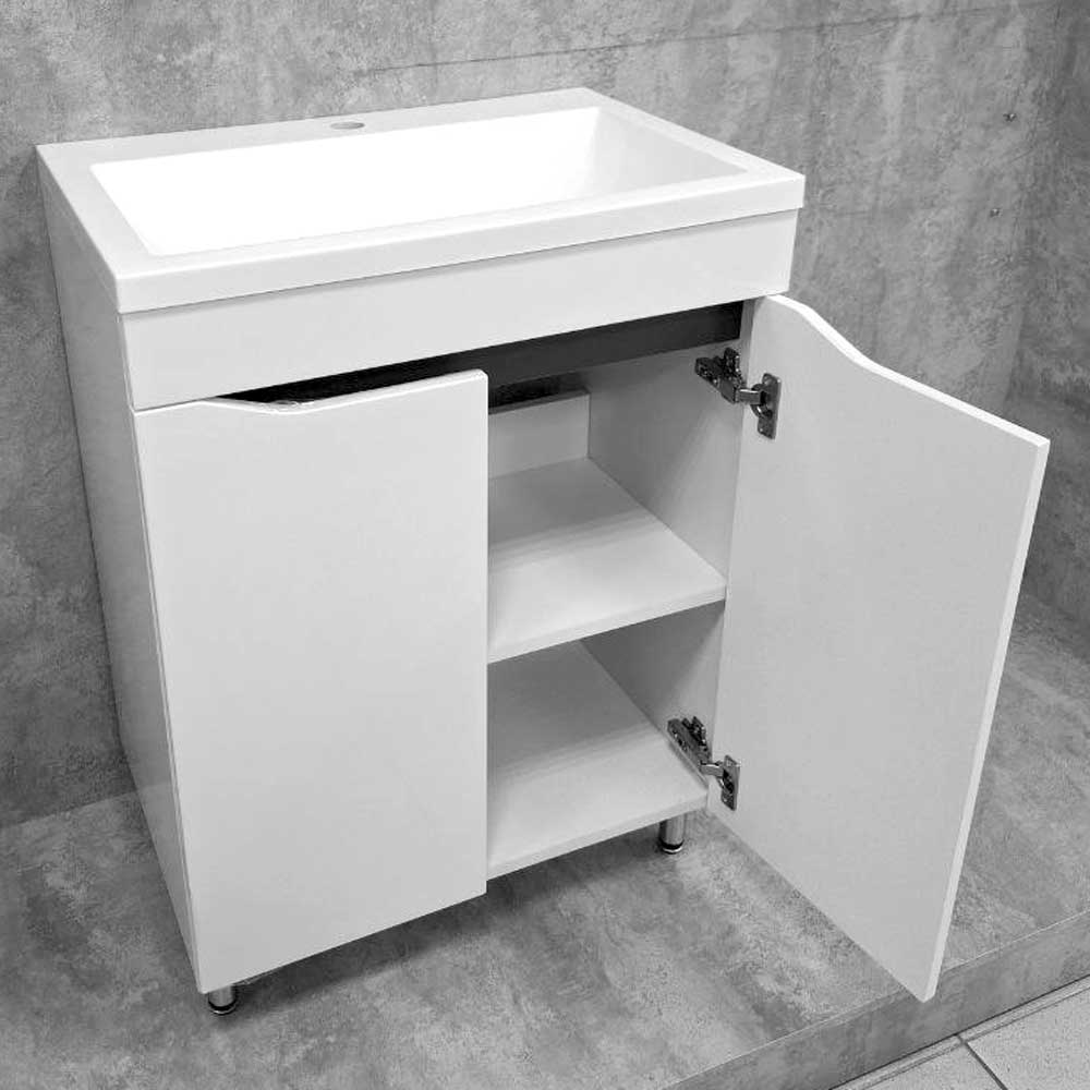 - Ширина тумбы без раковины – 59,4 см, высота без ножек и раковины – 69,2 см, глубина – 39,3 см