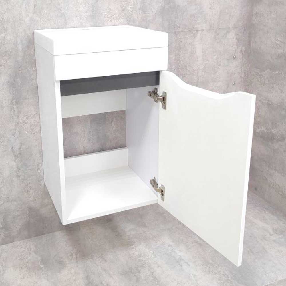 - Ширина тумбы без раковины – 39,4 см, высота без раковины – 60 см, глубина – 34,4 см