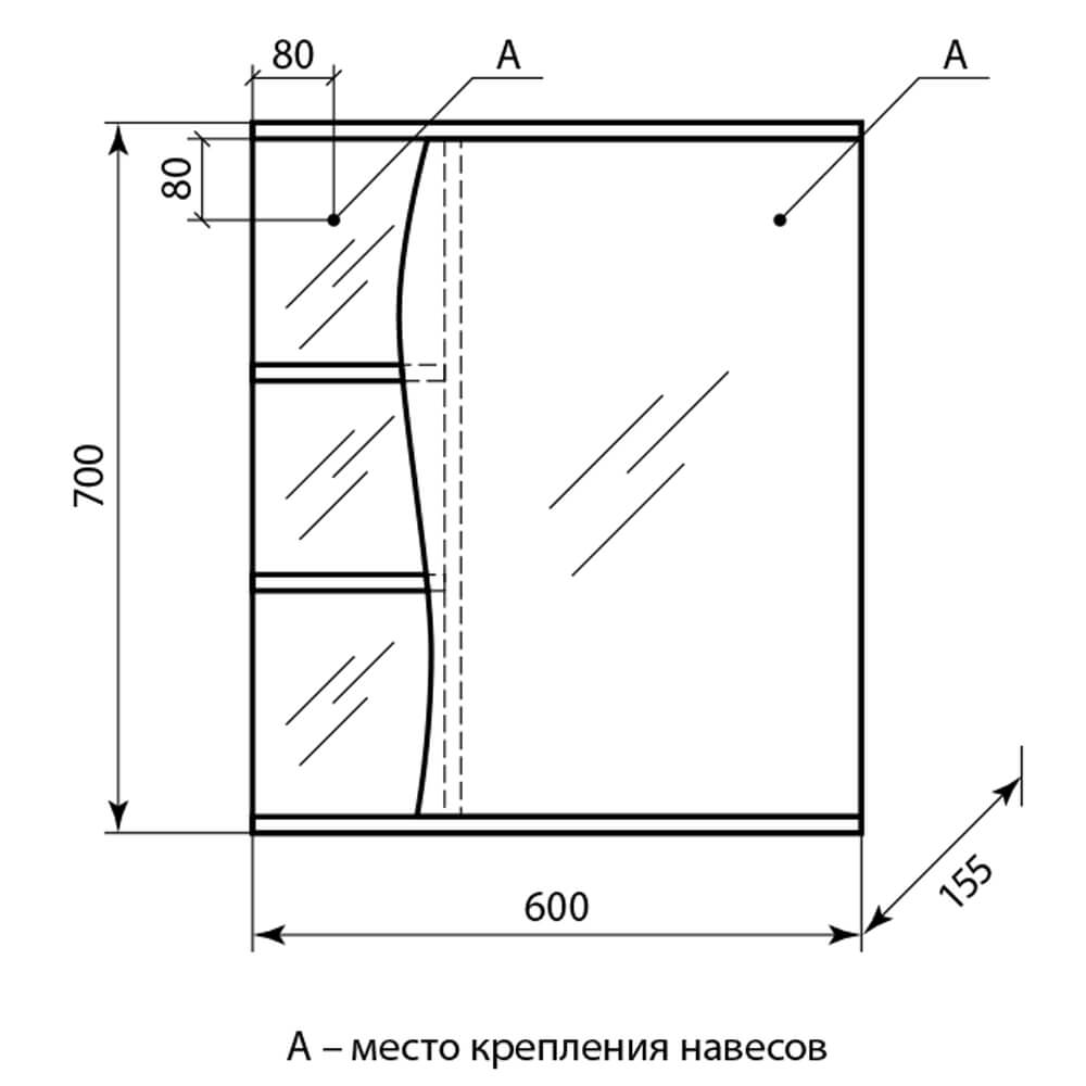 - Размеры (ШхГхВ): 60x15,5x70 см
