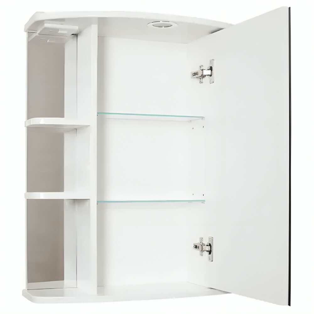 - Зеркало-шкаф оснащено встроенной подсветкой, электрической розеткой и выключателем