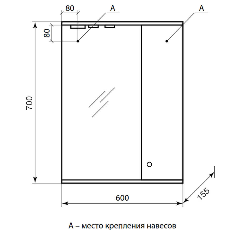 - Зеркало-шкаф оснащено встроенной подсветкой, электрической розеткой и выключателем