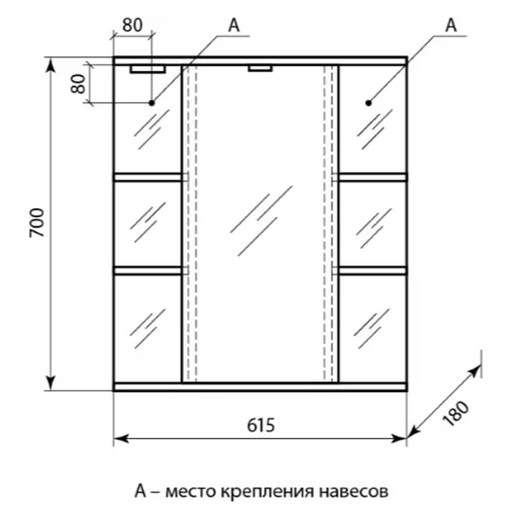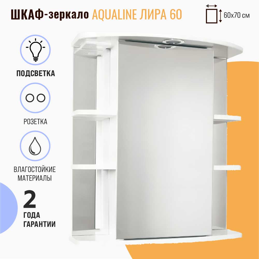 - Зеркало-шкаф оснащено встроенной подсветкой, электрической розеткой и выключателем