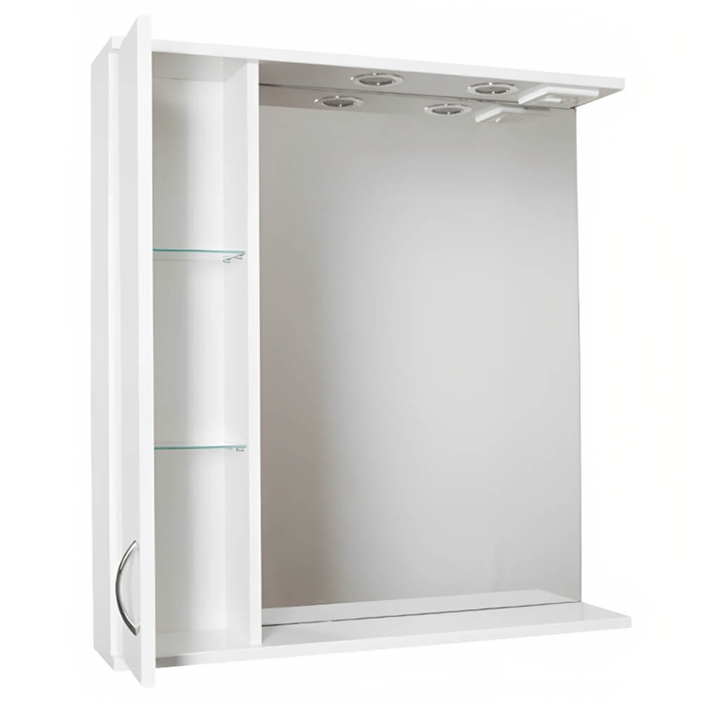 - Зеркало-шкаф оснащено встроенной подсветкой, электрической розеткой и выключателем