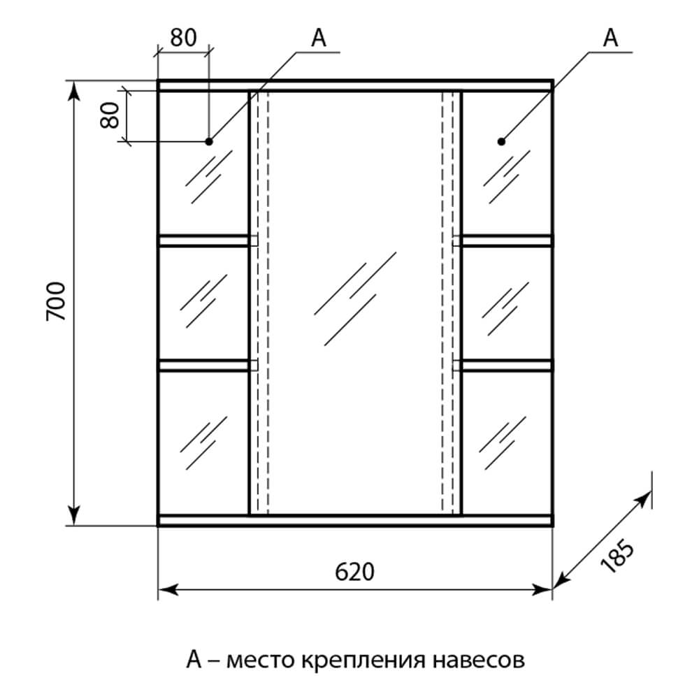 - Размеры (ШхГхВ): 62x18,5x70 см