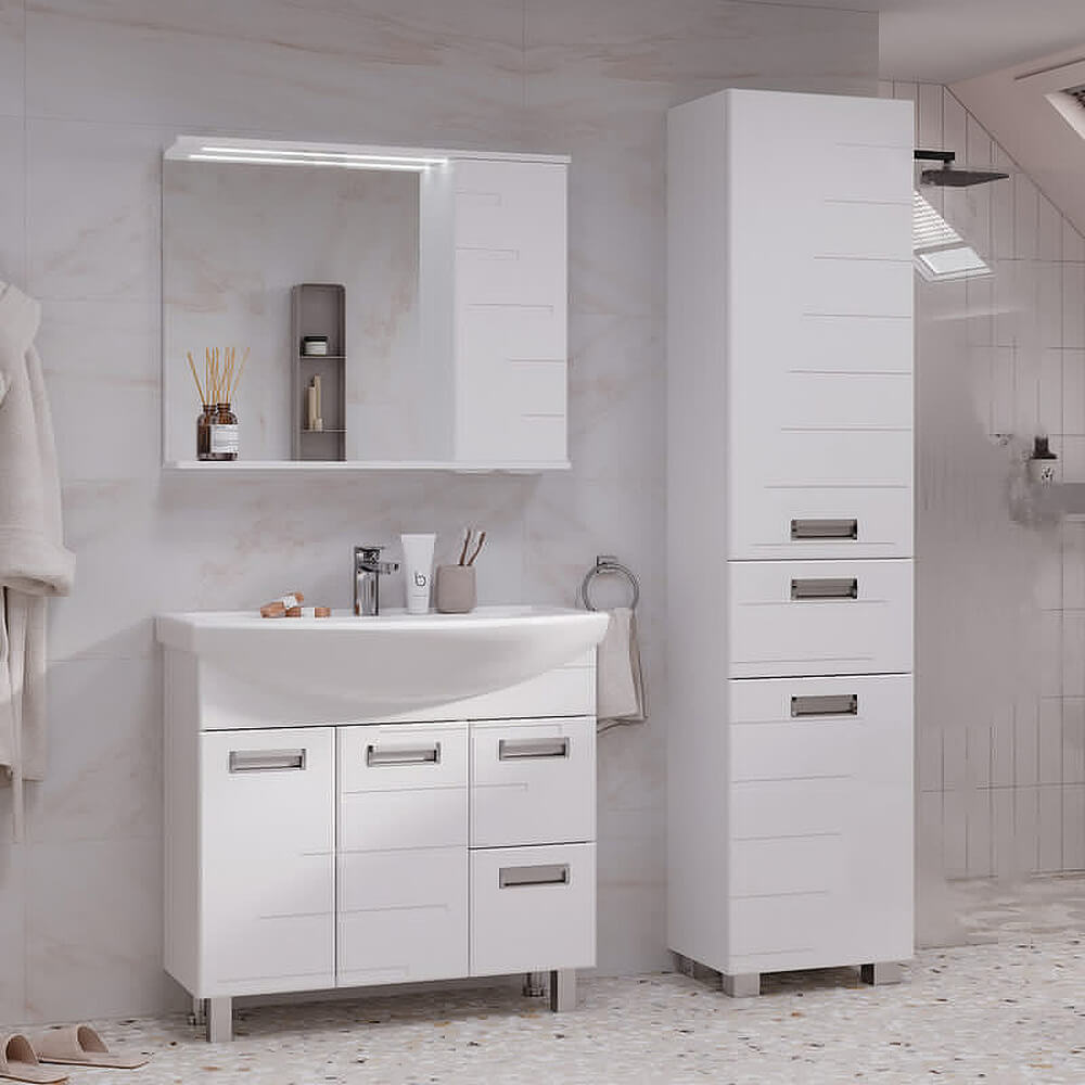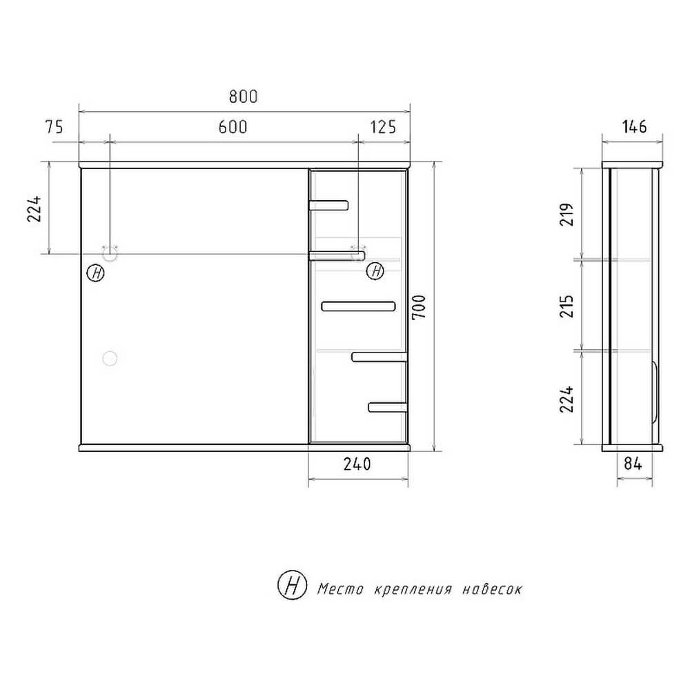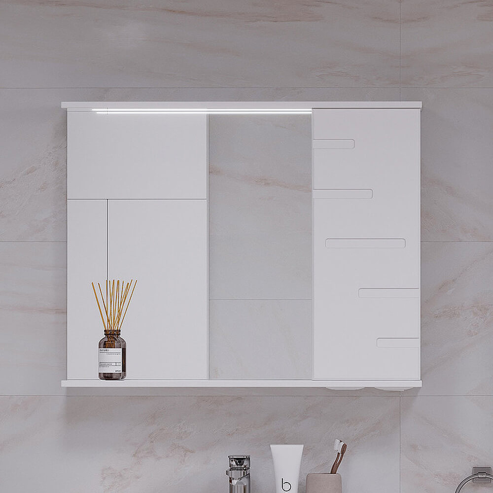 - Зеркало-шкаф оснащено встроенной светодиодной подсветкой, электрической розеткой и выключателем