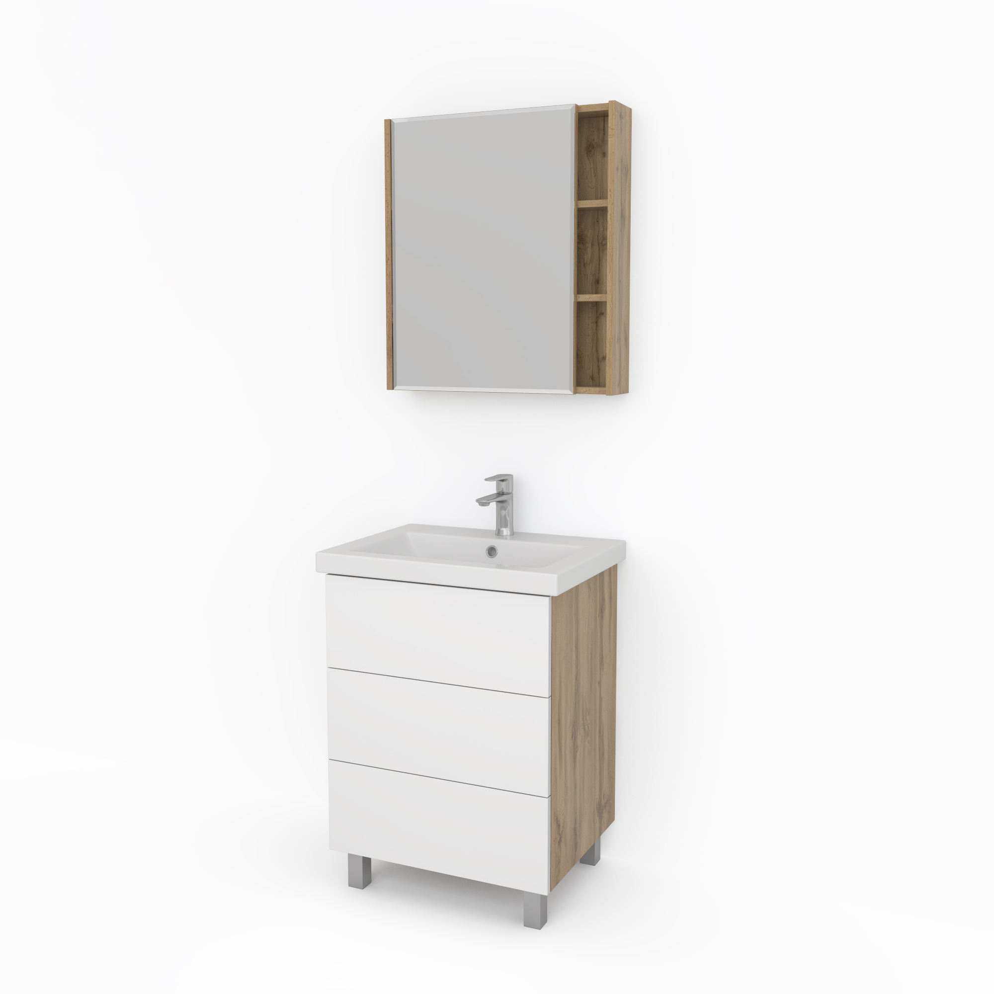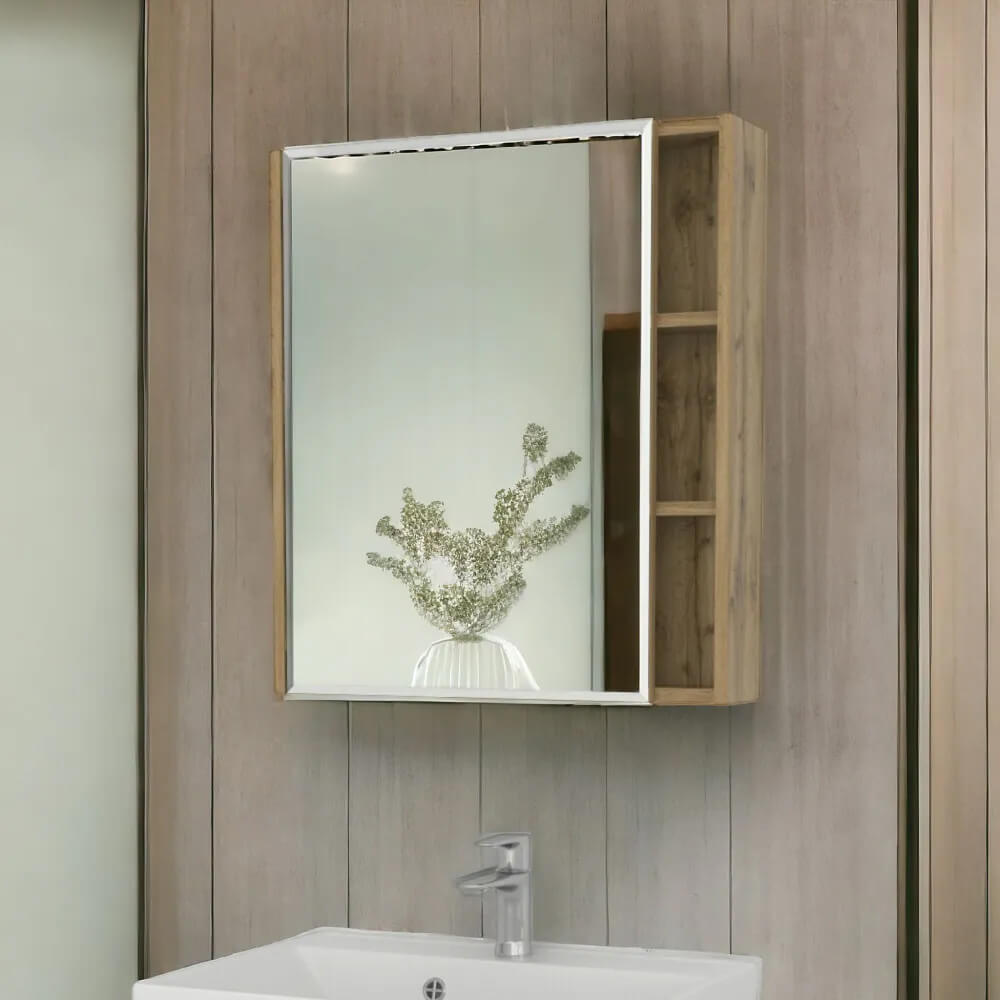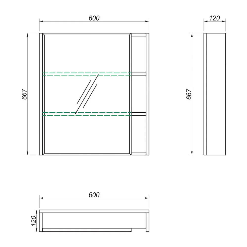 - Имеет 1 отделение с двумя полками. Часть отделения прикрывается зеркальным фасадом, другая часть остается открытой