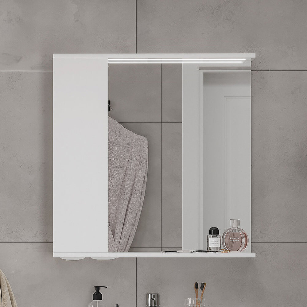 - Зеркало-шкаф оснащено встроенной светодиодной подсветкой, электрической розеткой и выключателем