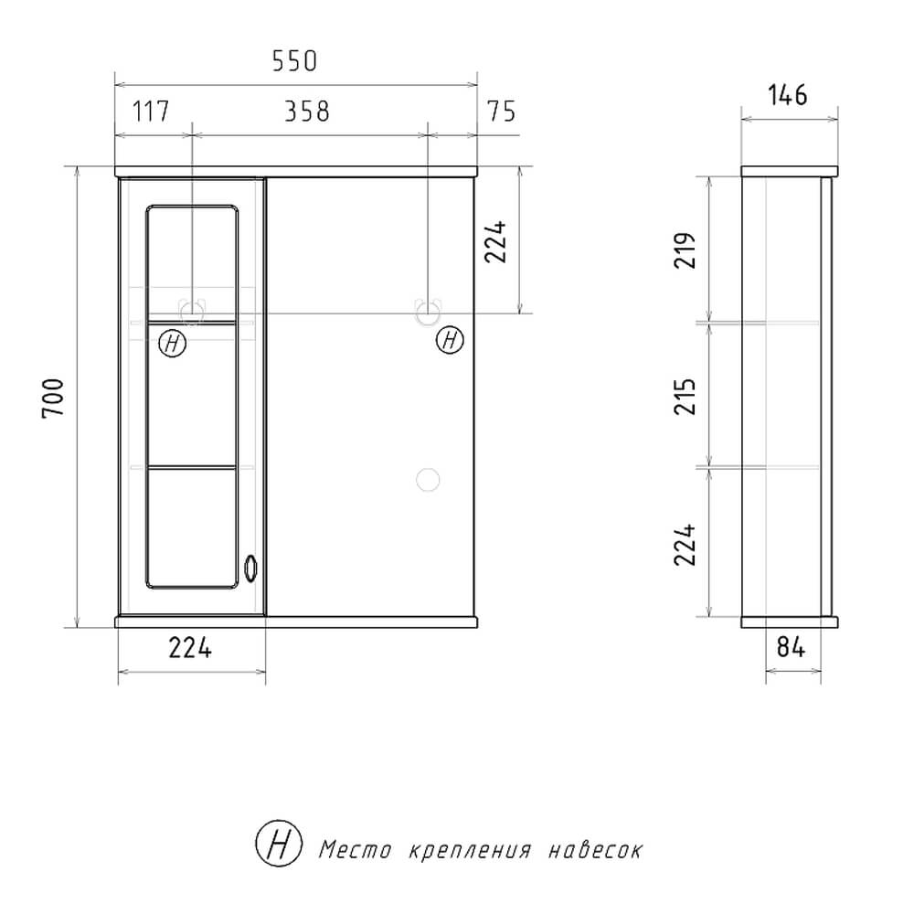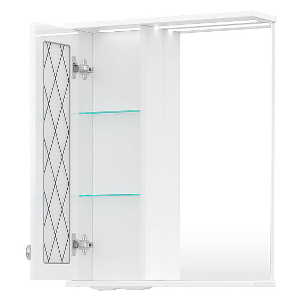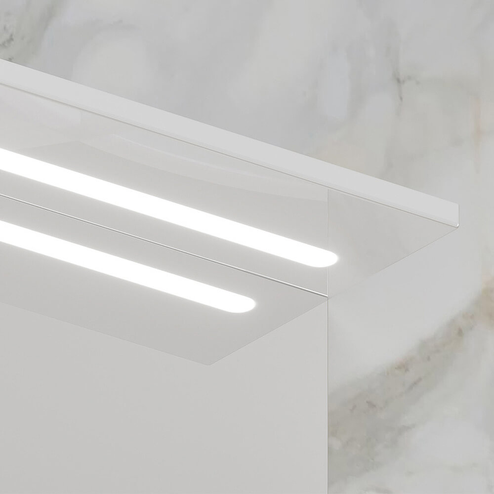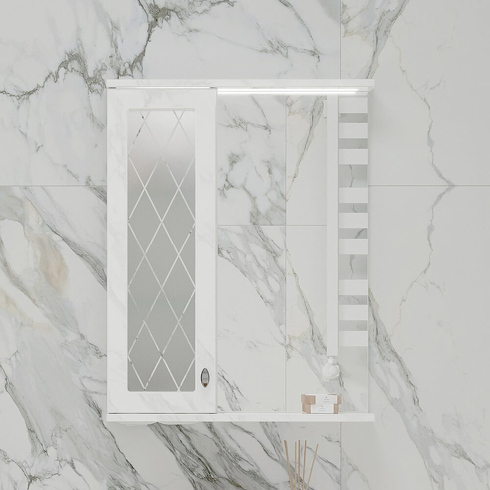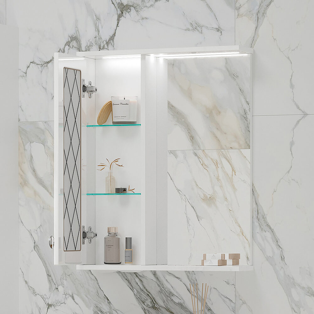 - Зеркало-шкаф оснащено встроенной светодиодной подсветкой, электрической розеткой и выключателем