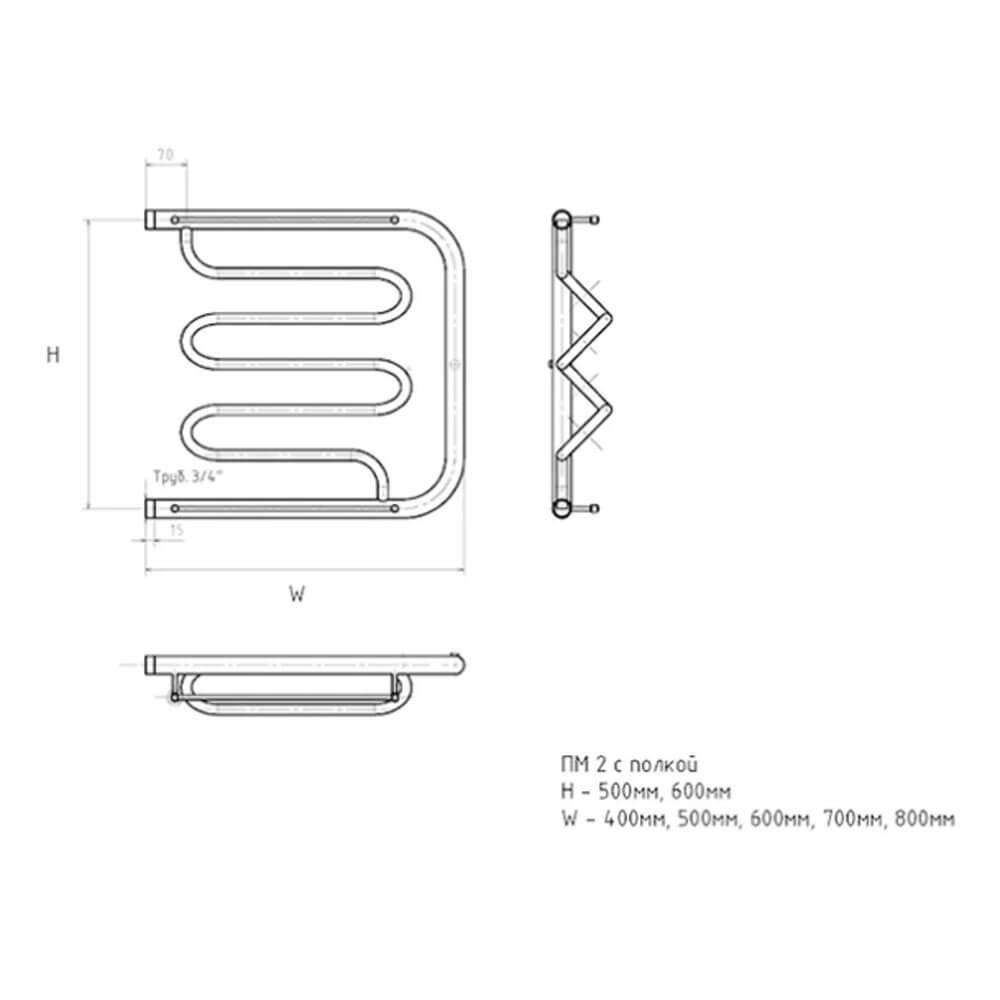 - Форма полотенцесушителя – ПМ-образная с полками