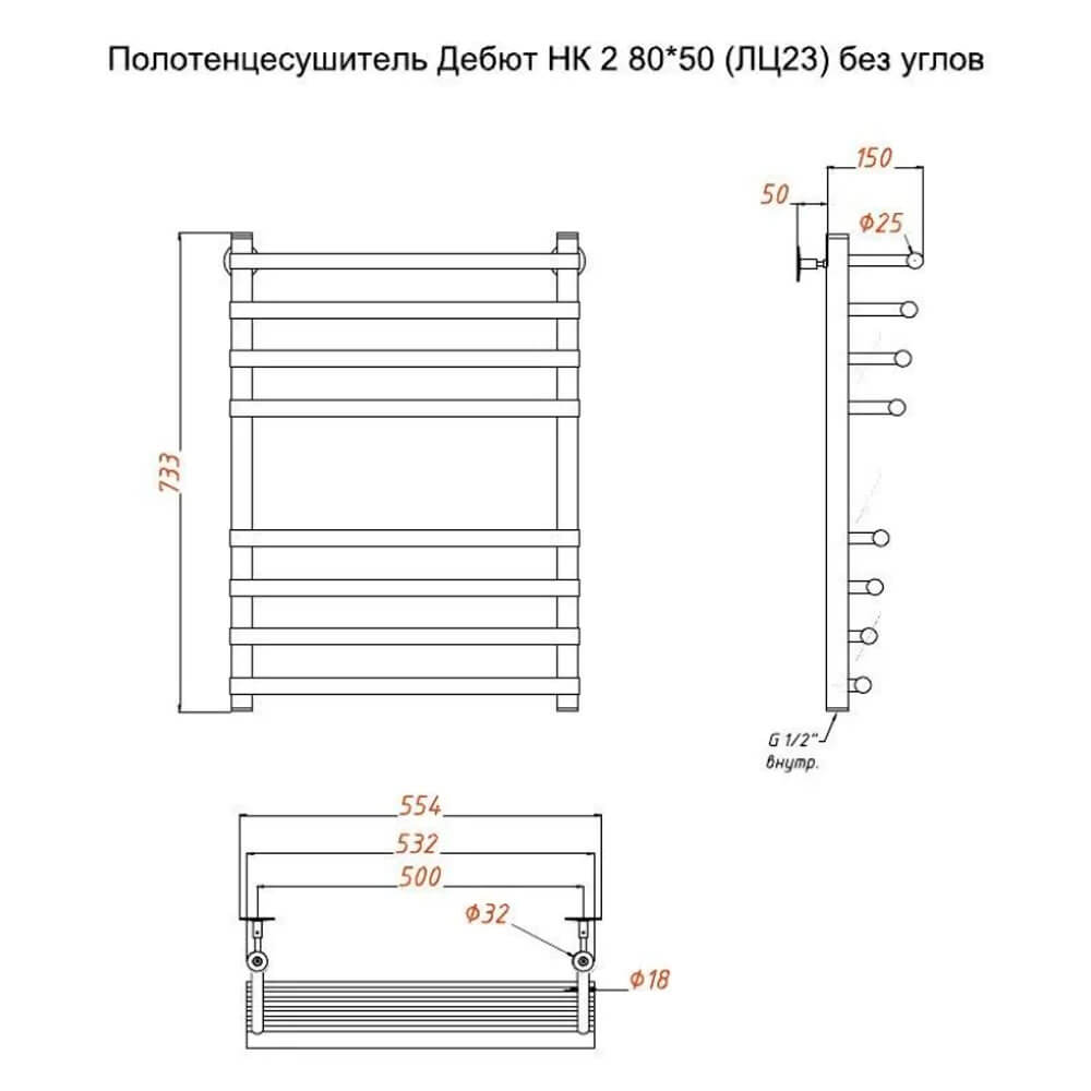 - Форма полотенцесушителя – лесенка с 8 перекладинами