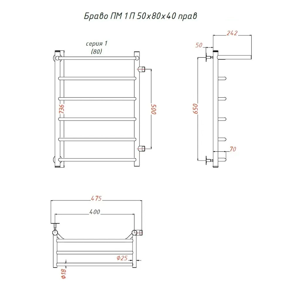 - Форма полотенцесушителя – лесенка с 8 перекладинами