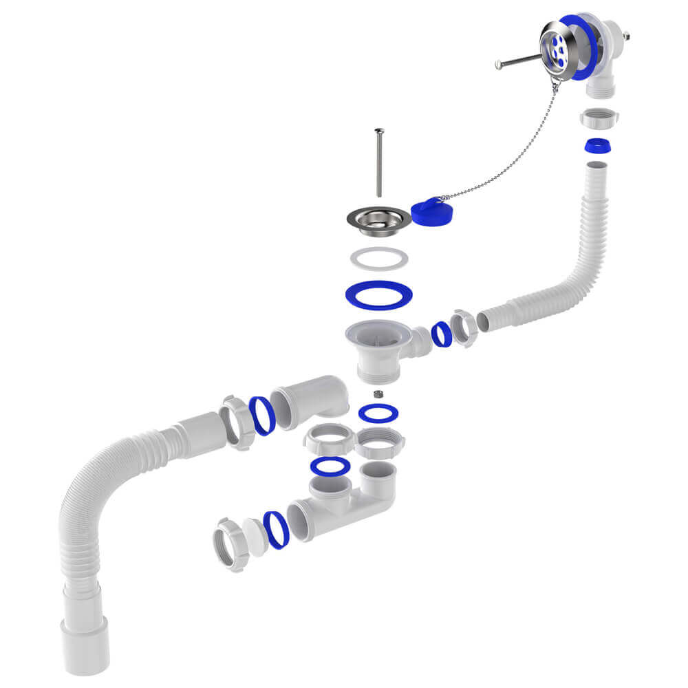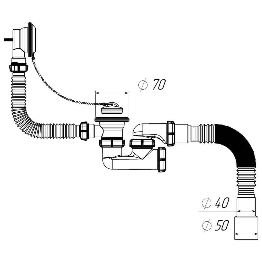 - Колено сифона регулируемое, с высотой гидрозатвора 50 мм