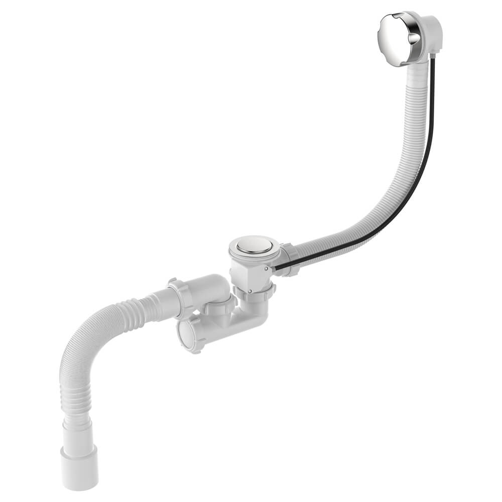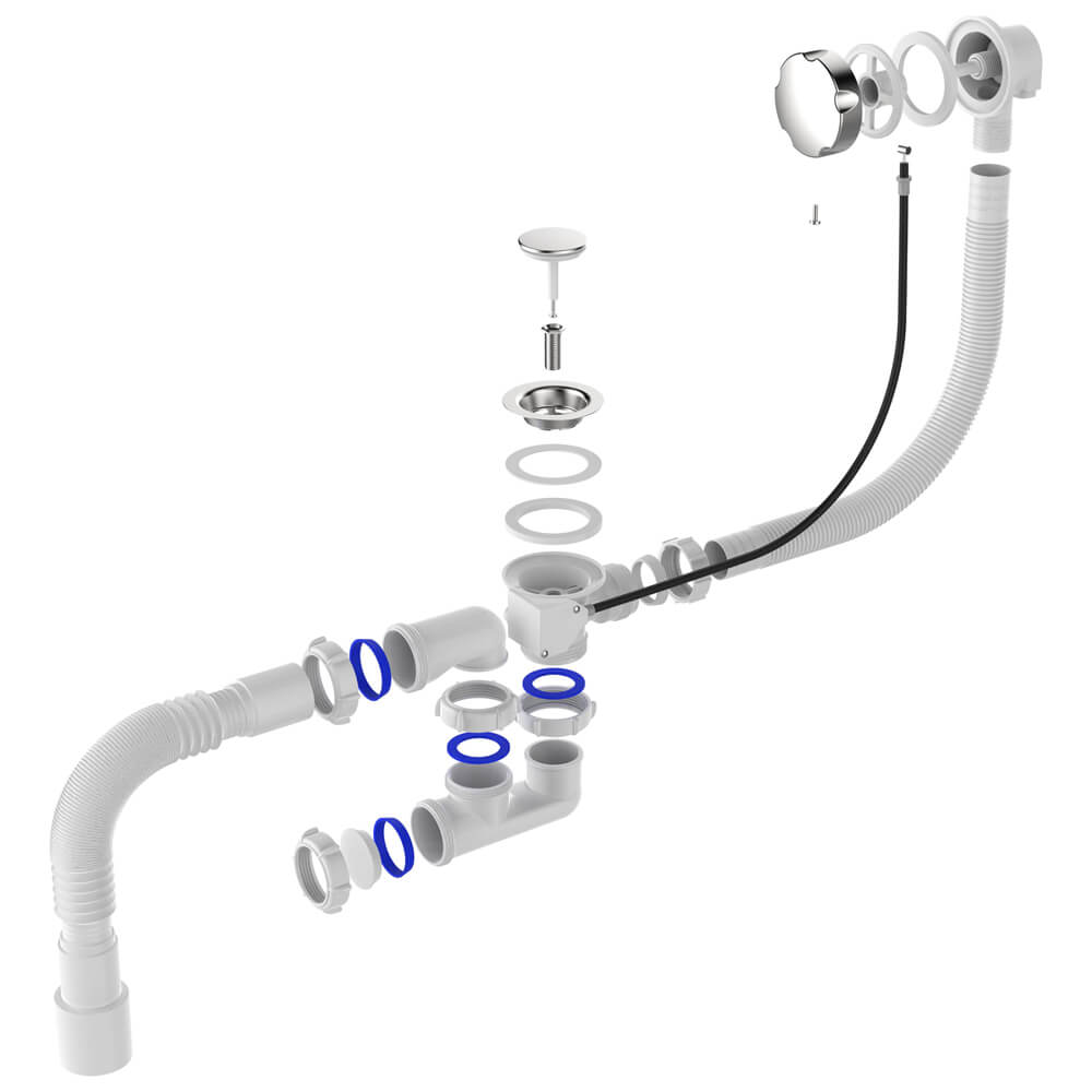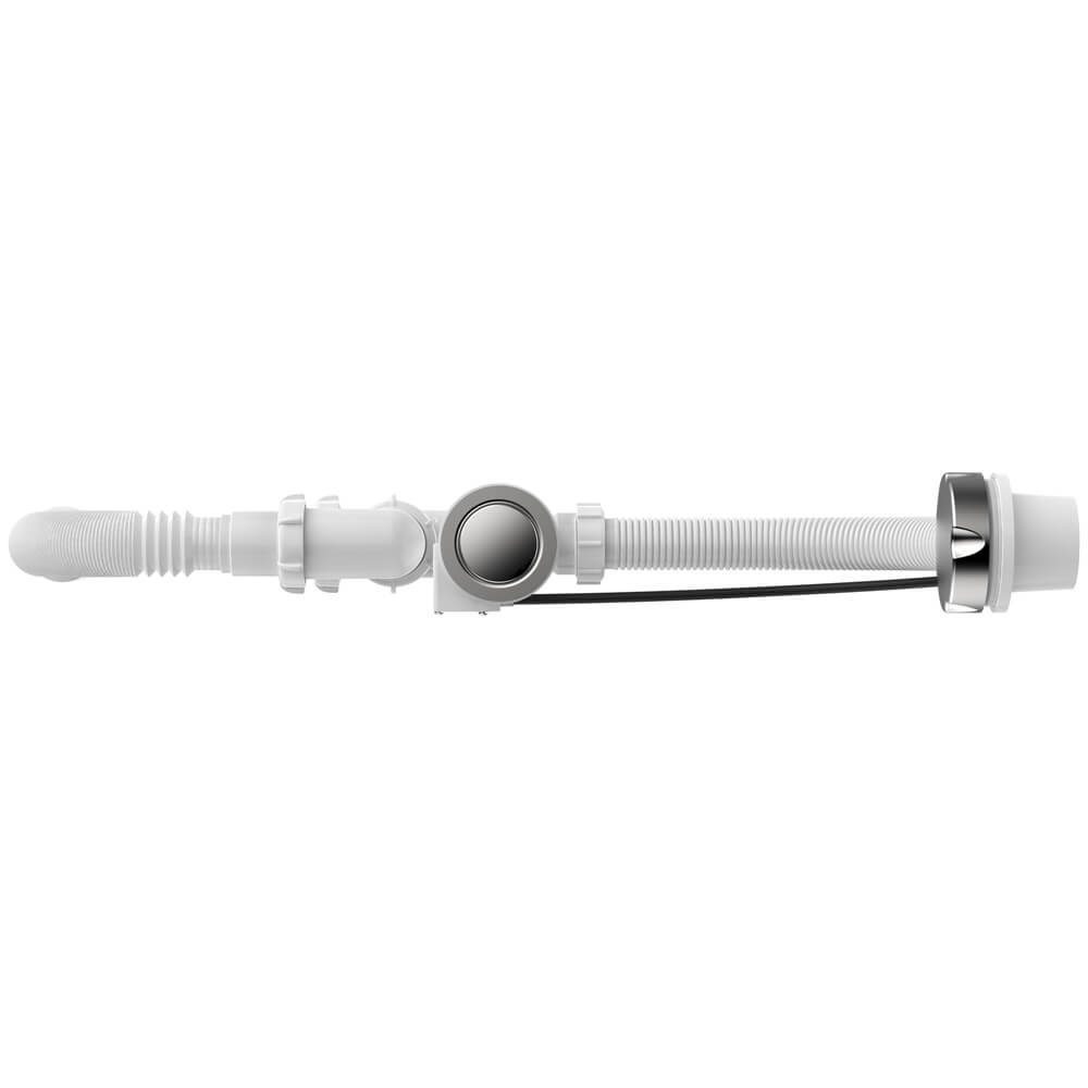 - Хромированная ручка перелива соединена с заглушкой-грибком на выпуске специальным тросиком