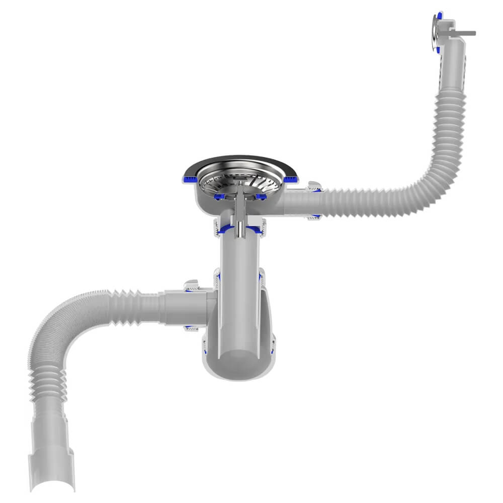 - Корпус сифона увеличен для достижения максимальной проточности и поддержания оптимального уровня гидрозатвора с высотой 55 мм