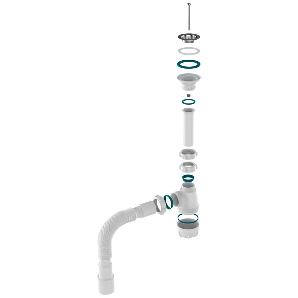 - Патрубок отвода под гайку 1 1/4" (внутренний диаметр 32 мм)