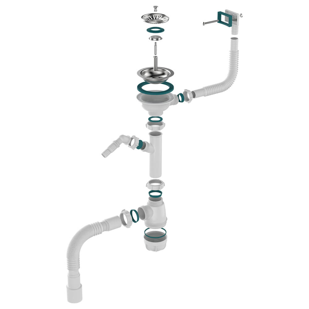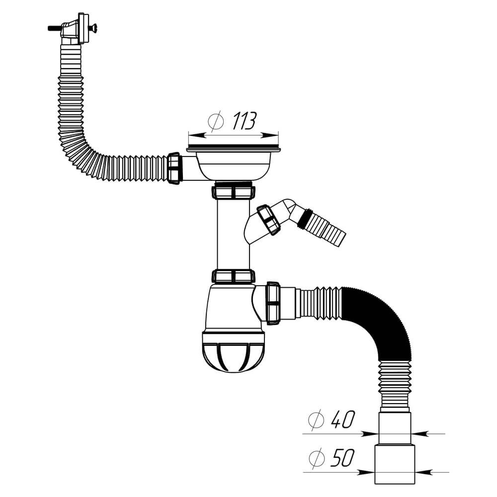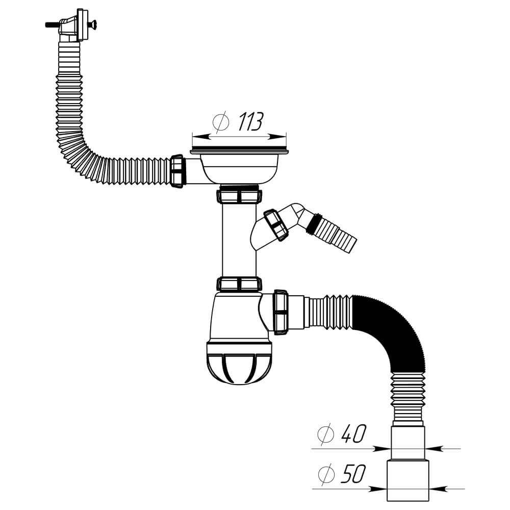 - Выпуск 3 1/2": разборный, с решетками 113 мм и ситечком 78 мм
