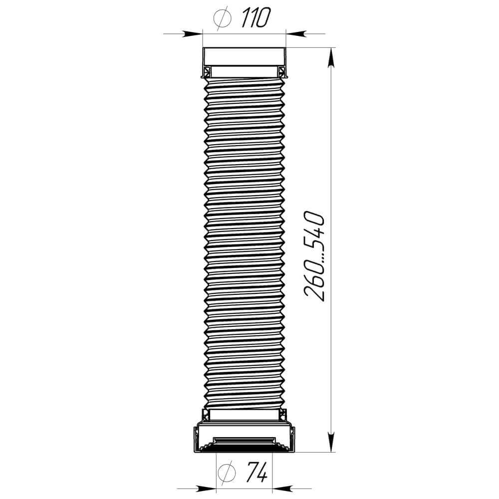 - Длина гофры в сжатом состоянии 260 мм, в раскрытом – 540 мм