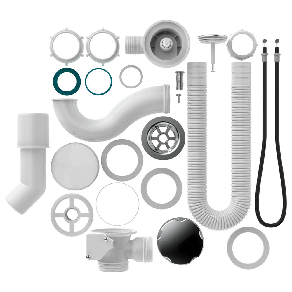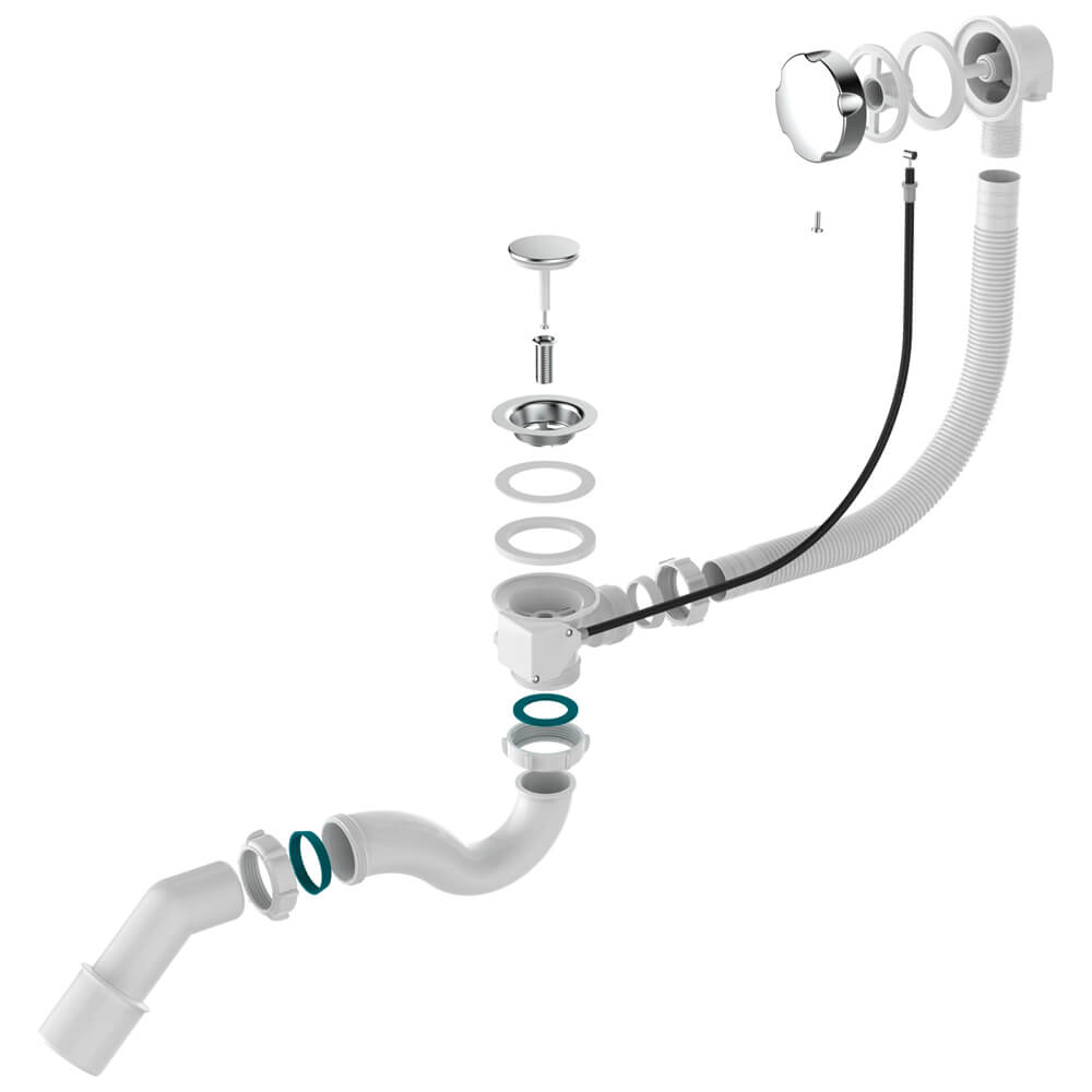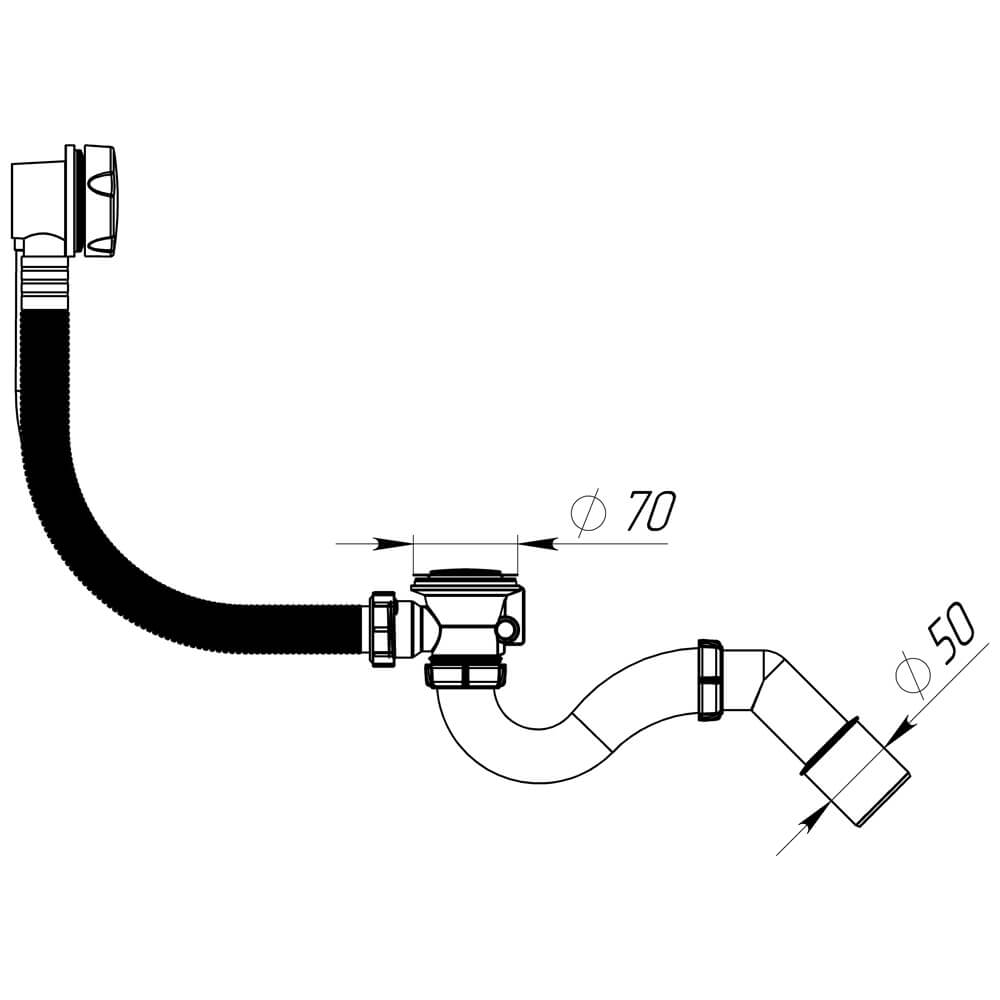 - Выпуск спроектирован под стандартный диаметр сливного отверстия ванн Ø50 мм