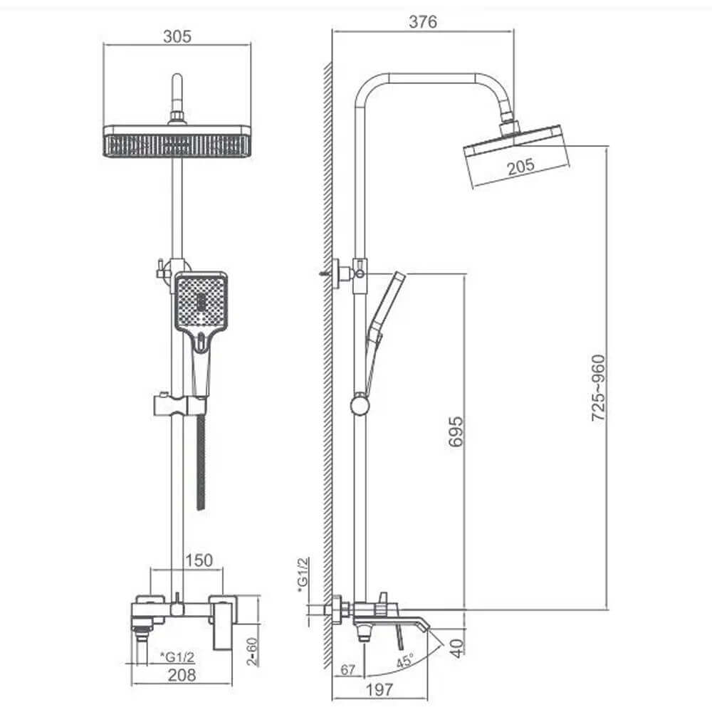 - Шарнирный соединитель позволяет менять угол наклона верхнего душа