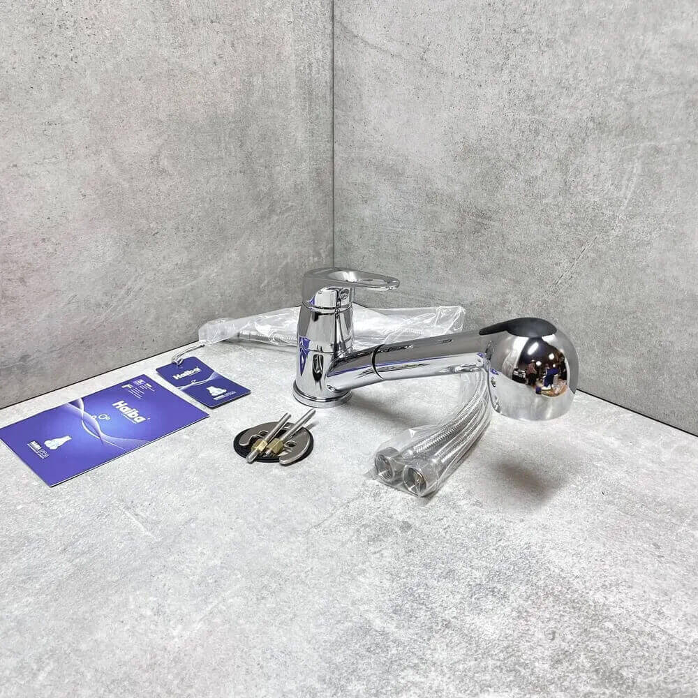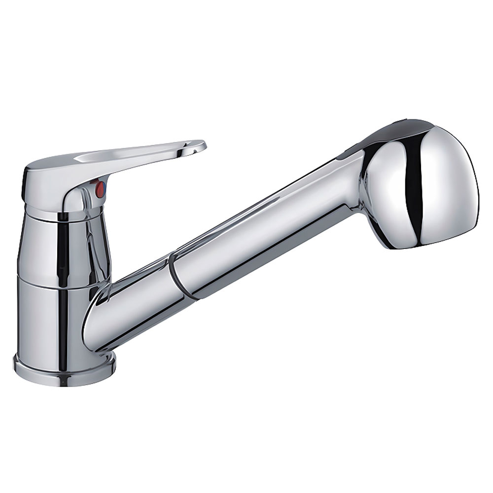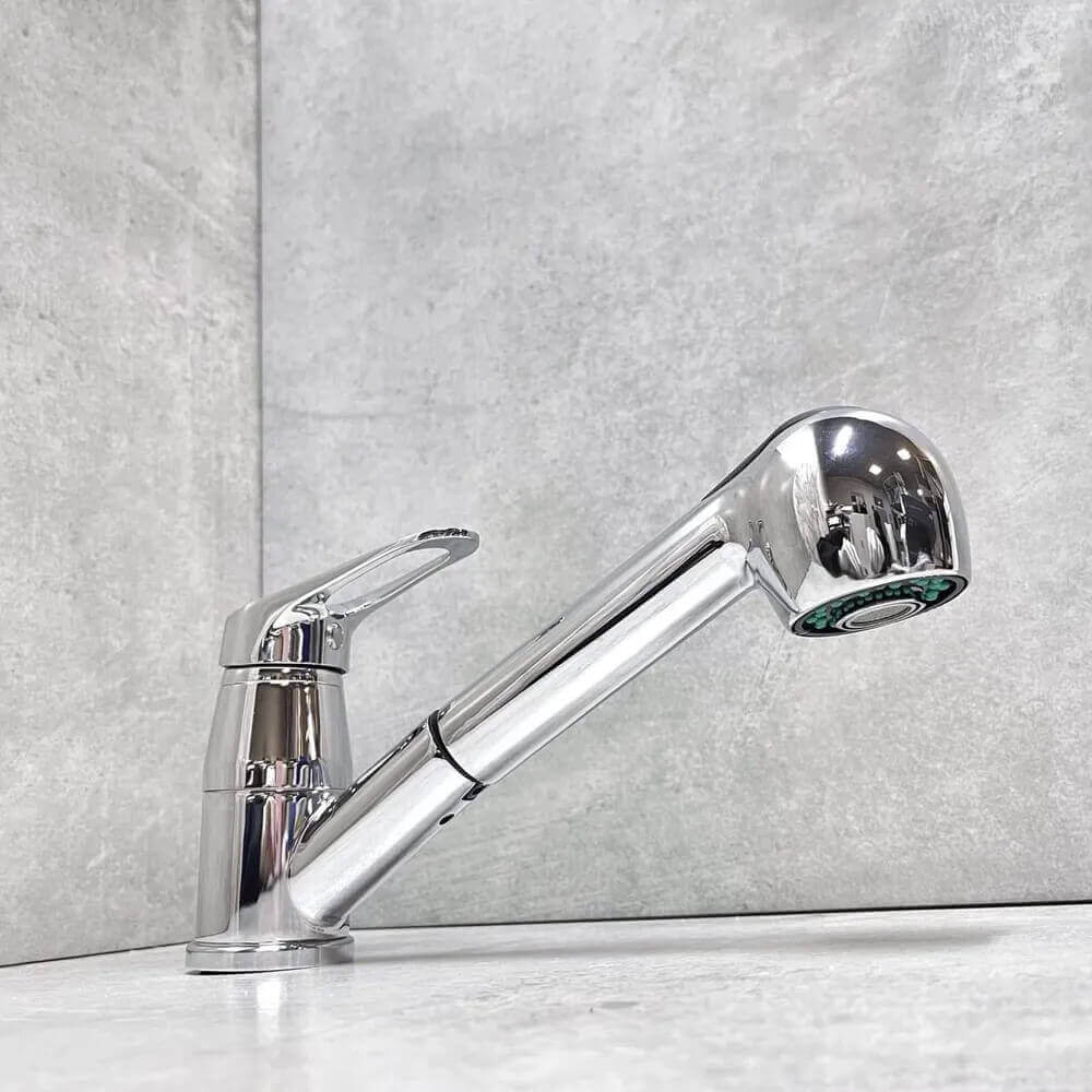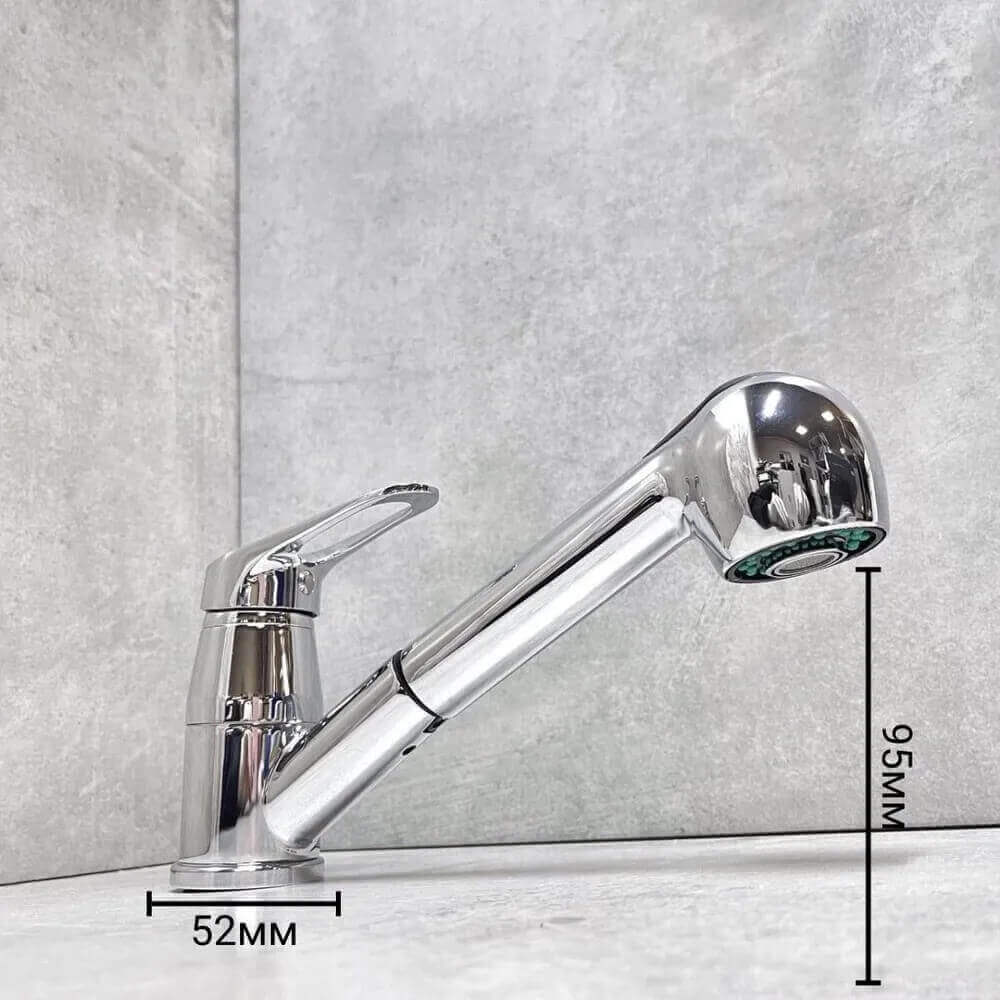 - Смеситель с выдвижным изливом удобен для мытья крупной посуды, мойки и наполнения емкостей