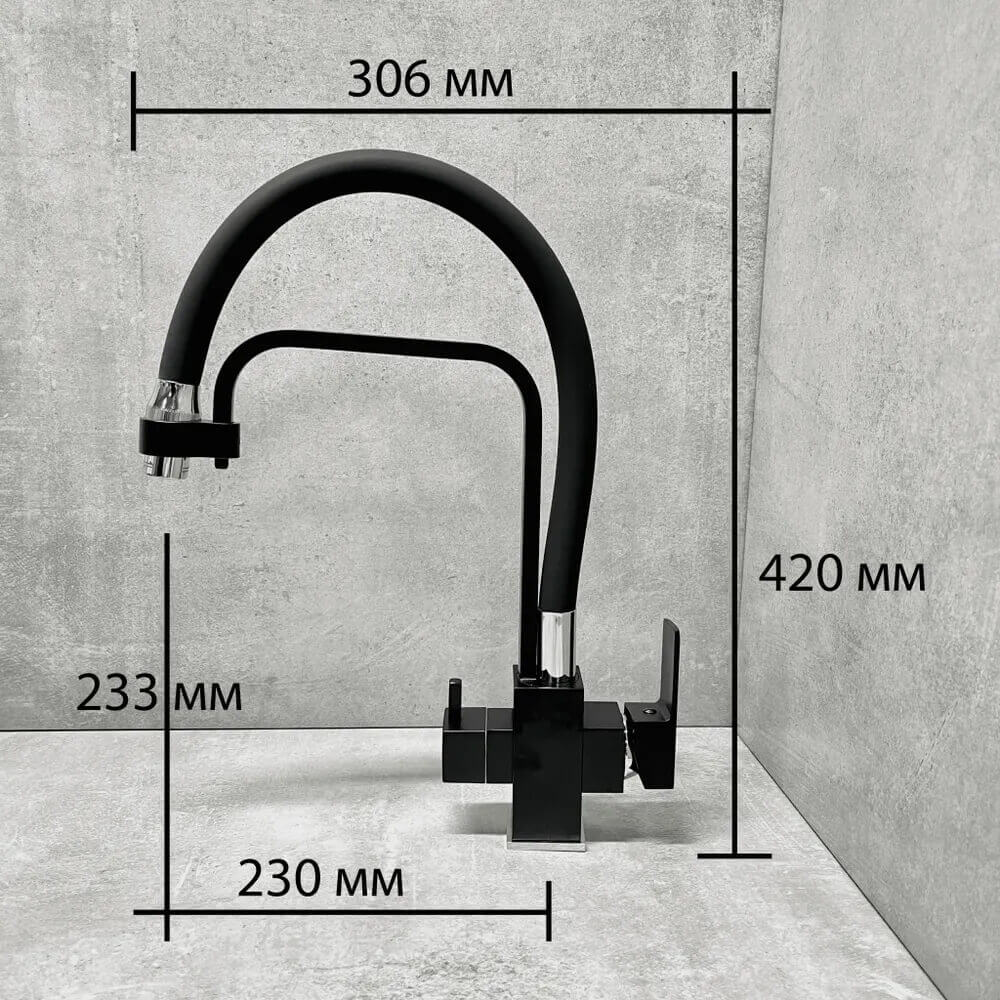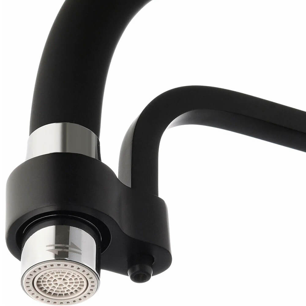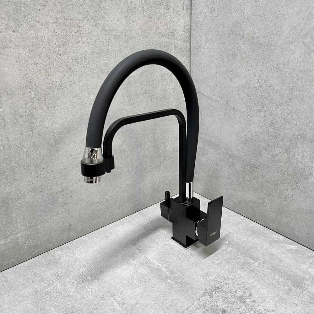- Гибкий излив более маневренный, чем обычный, и позволяет настроить высоту и угол излива под любые нужды
