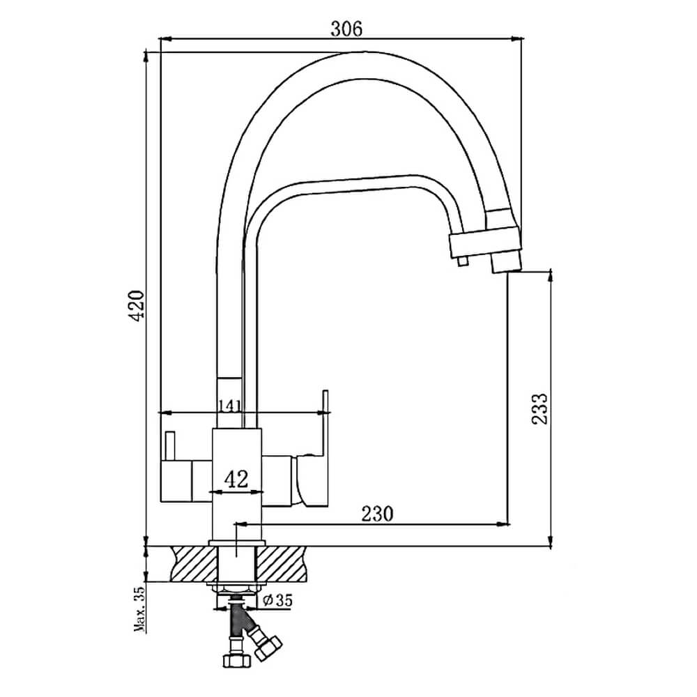 - Совмещенный поворотный излив для фильтрованной воды со съемным аэратором