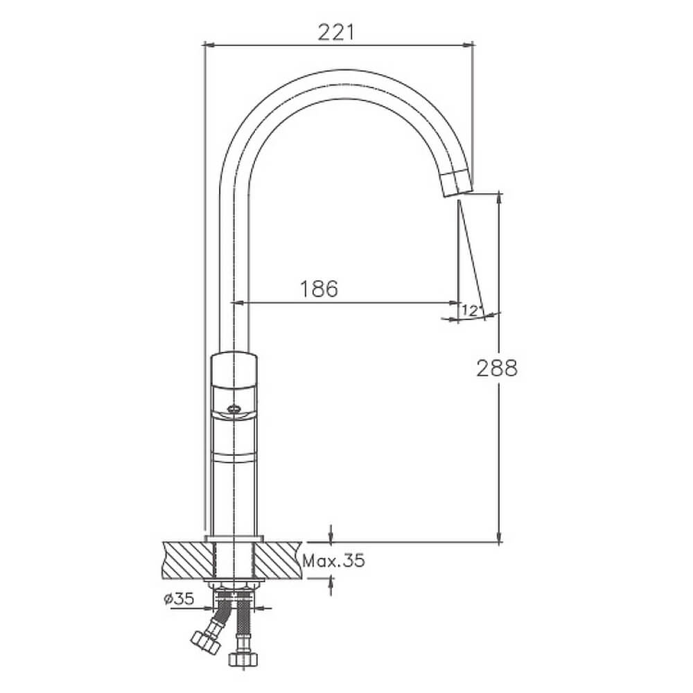 - Кран с поворотом на 360 градусов универсален, подходит к кухонным мойкам любых размеров и форм