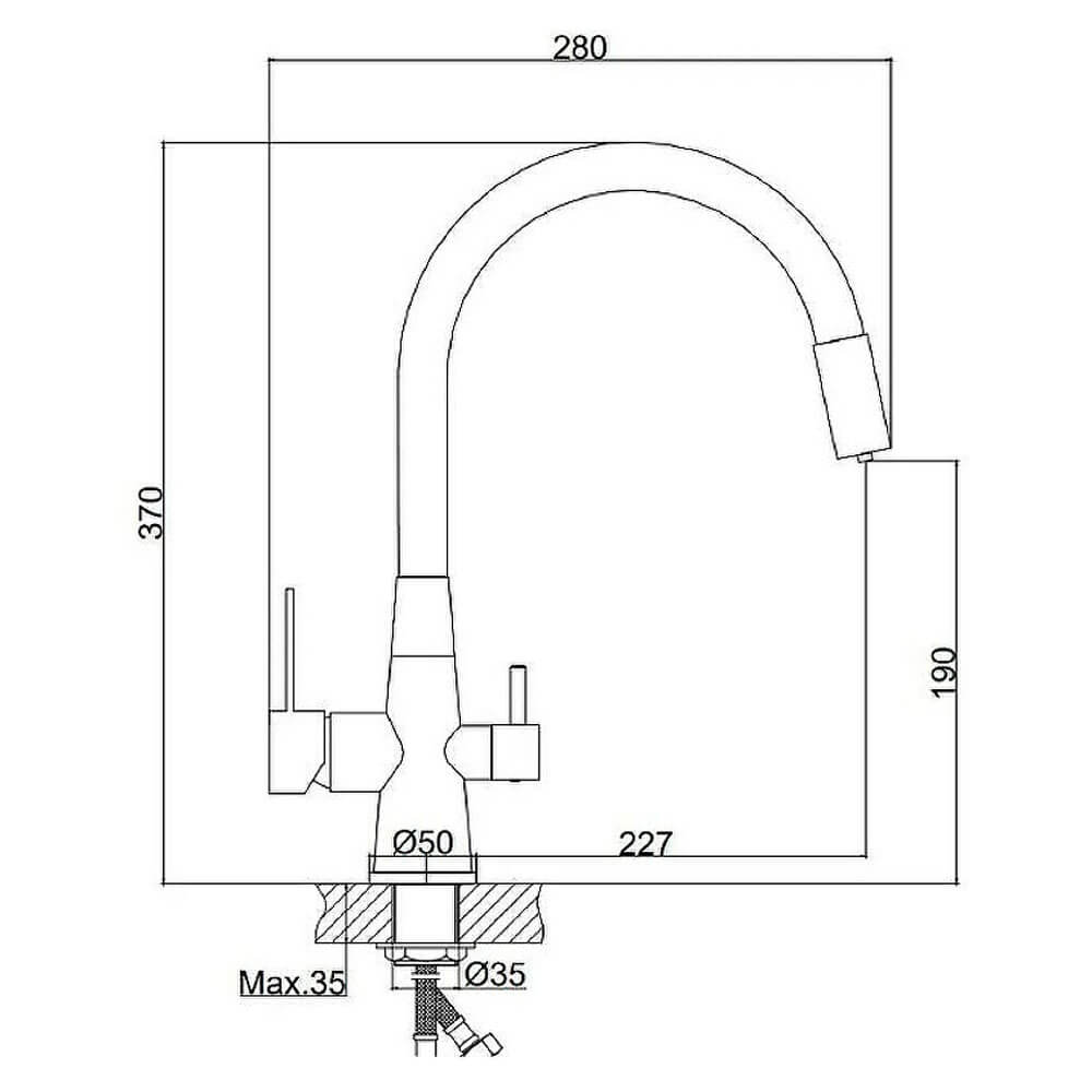 - Совмещенный поворотный излив для фильтрованной воды со съемным аэратором