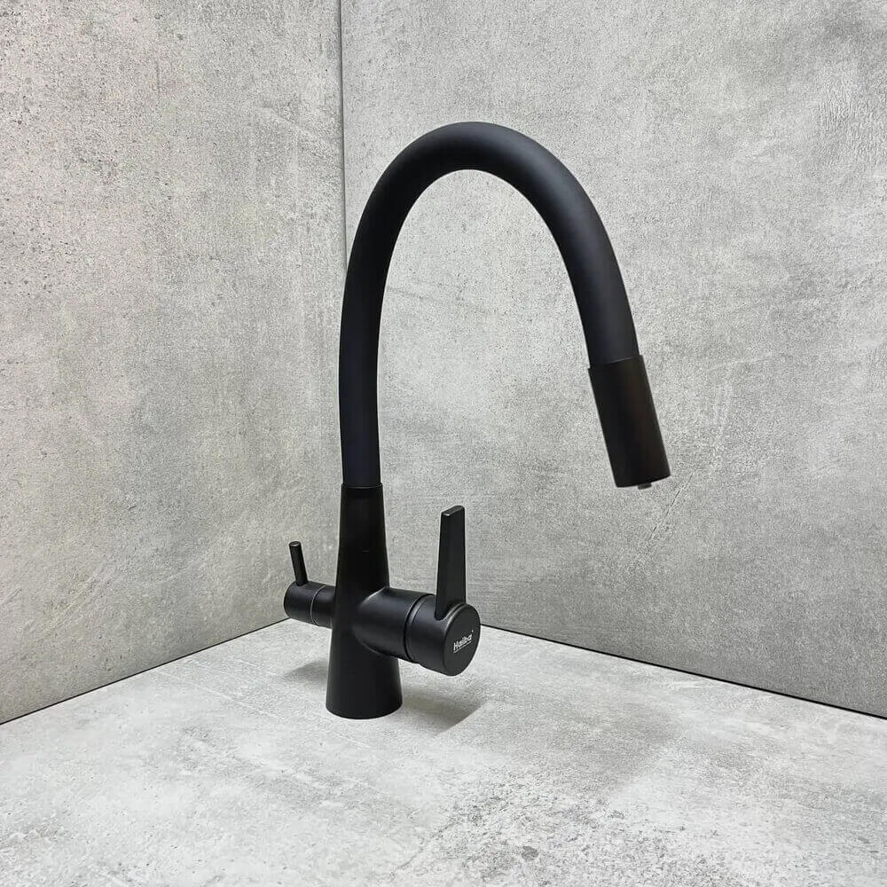 - Гибкий излив более маневренный, чем обычный, и позволяет настроить высоту и угол излива под любые нужды