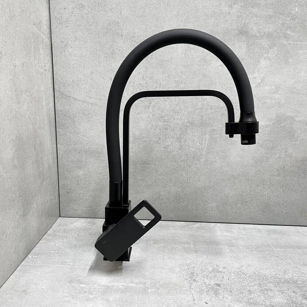 - Гибкий излив более маневренный, чем обычный, и позволяет настроить высоту и угол излива под любые нужды