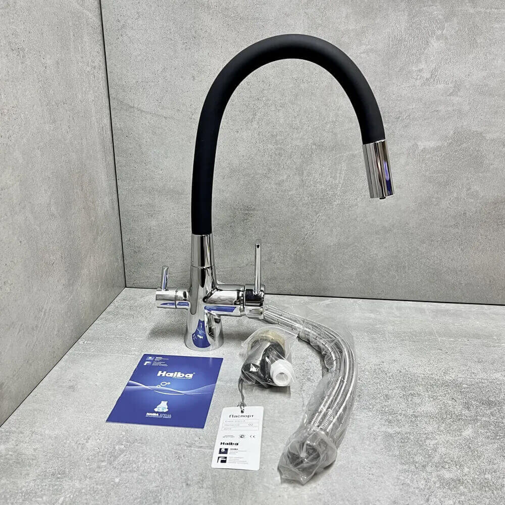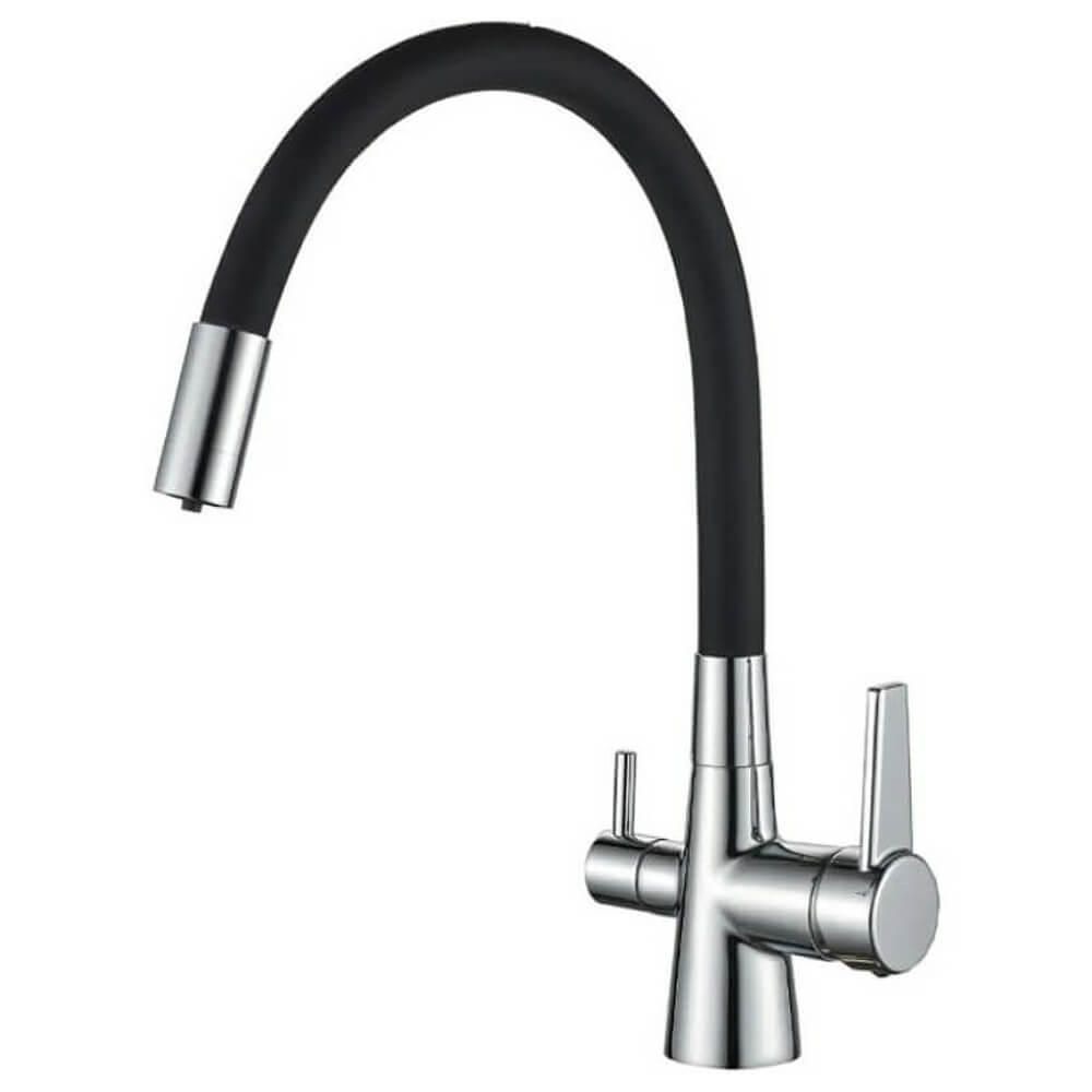 - Гибкий излив более маневренный, чем обычный, и позволяет настроить высоту и угол излива под любые нужды
