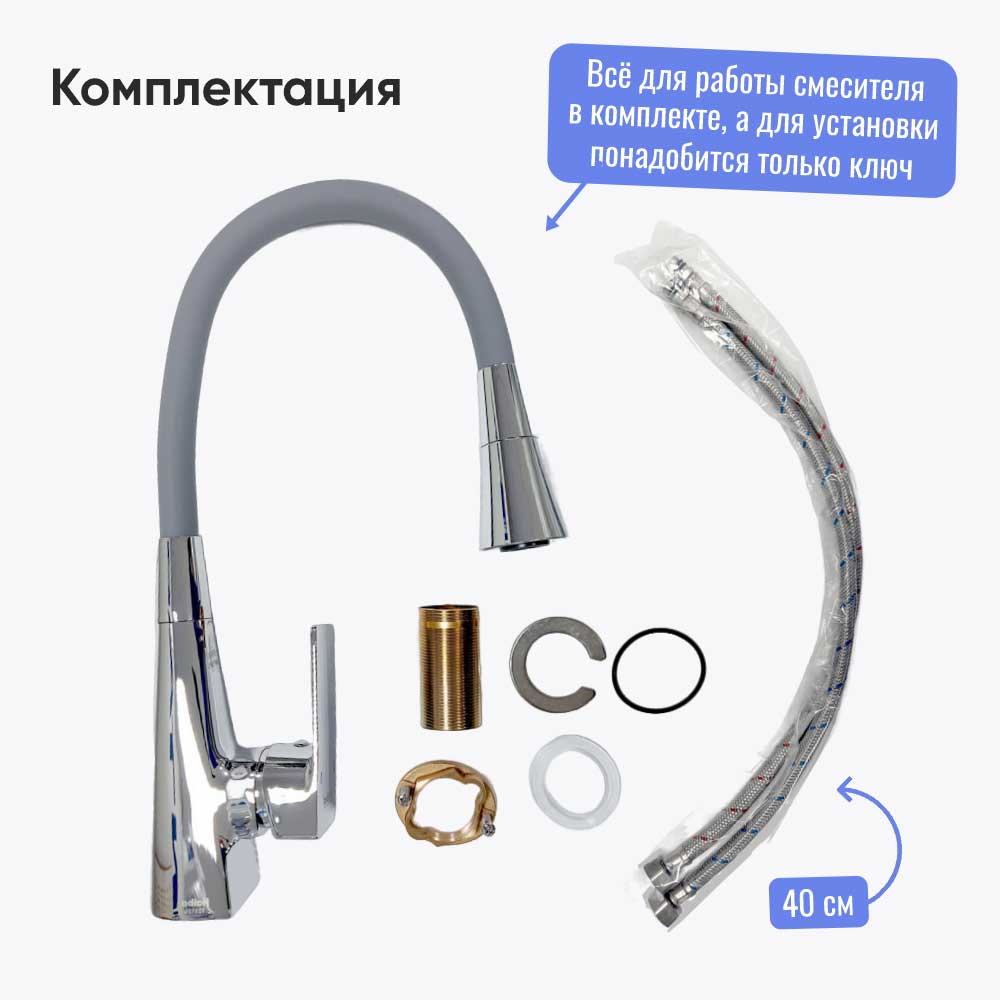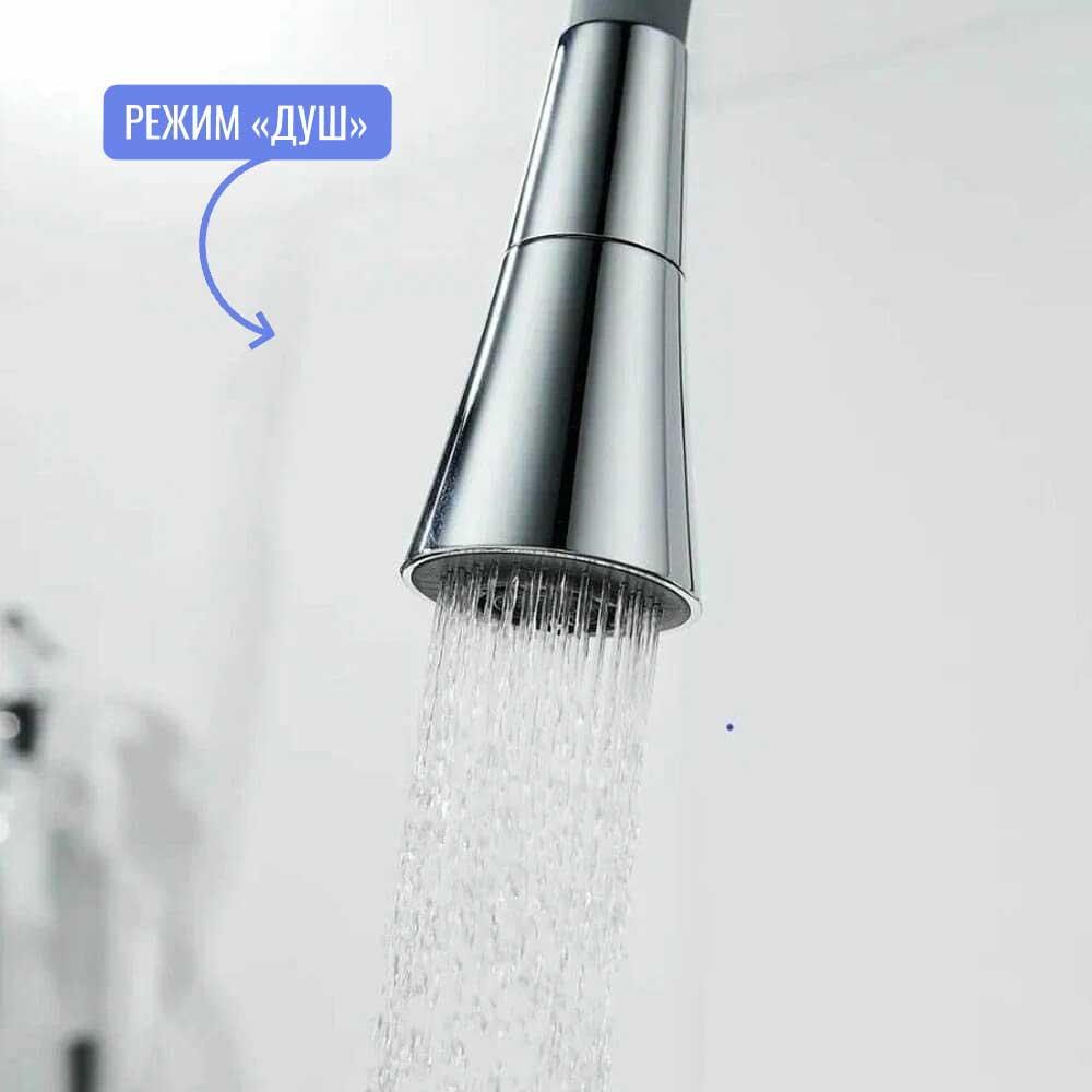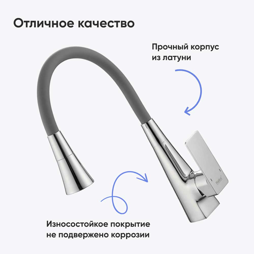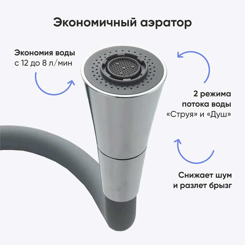 - Гибкий излив более маневренный, чем обычный, и позволяет настроить высоту и угол излива под любые нужды