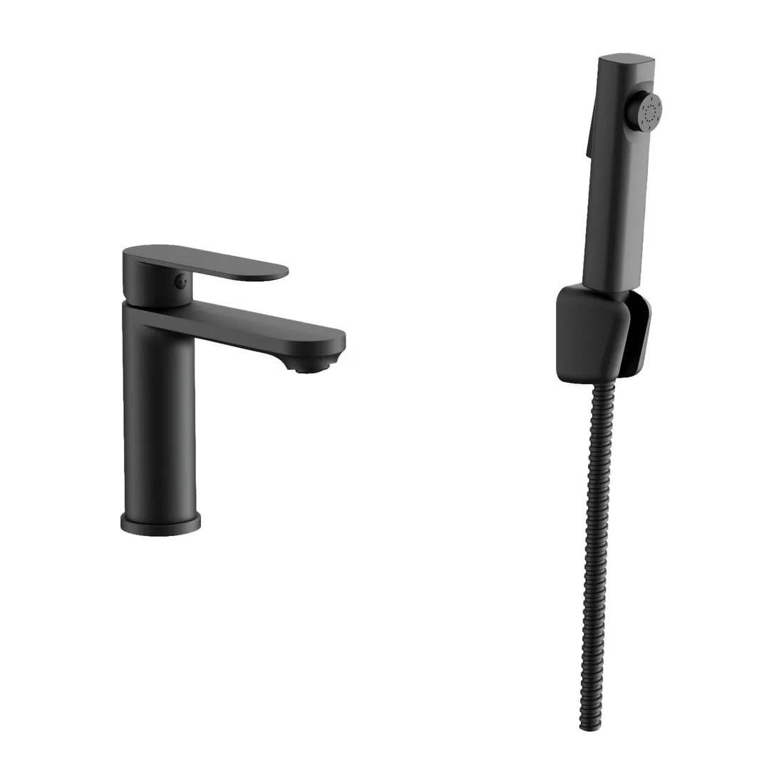 Смеситель на раковину с гигиенической лейкой BELZ B12713-7 ЧЕРНЫЙ лат., кар.35мм, под.55см (10)