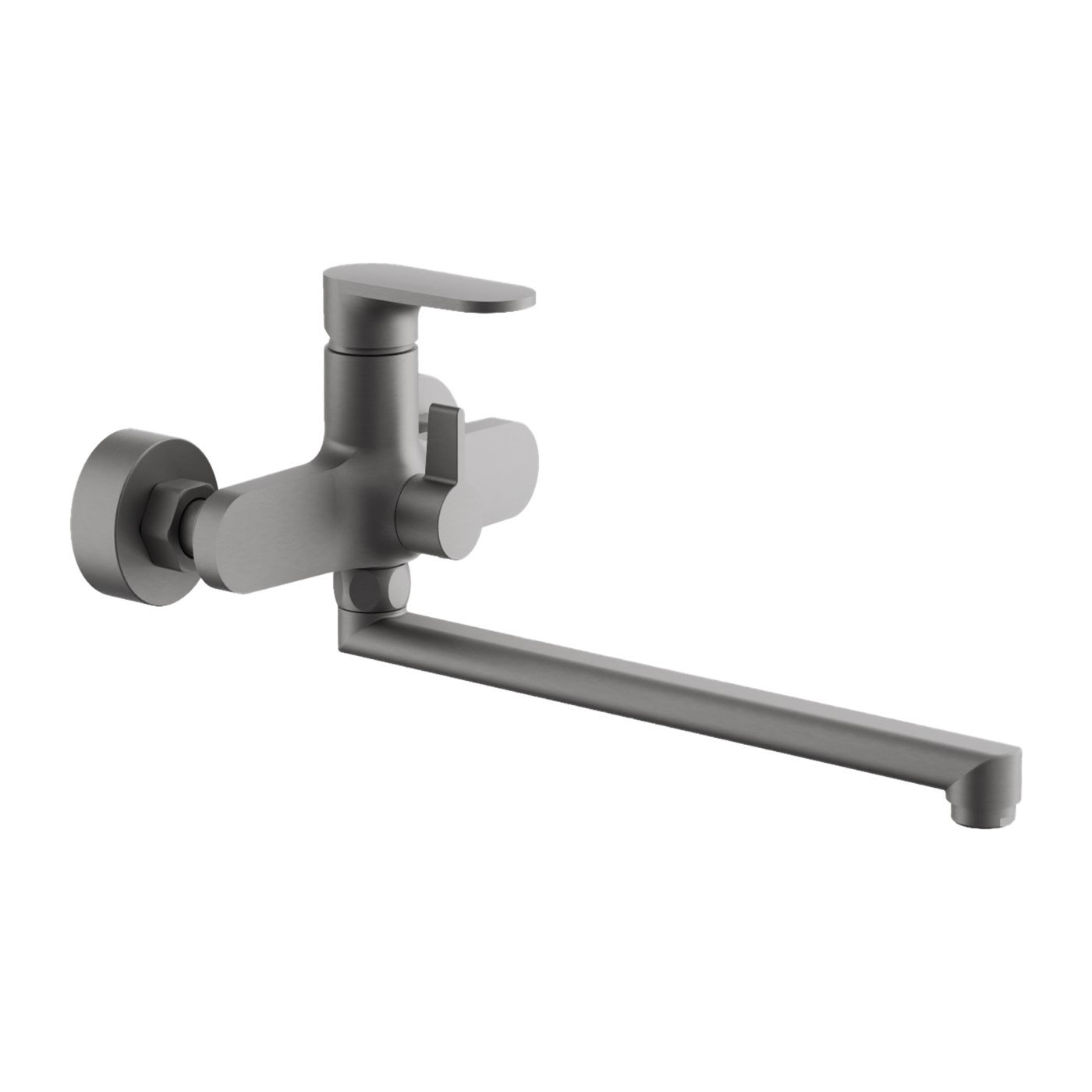—Смеситель на ванну длинный излив BELZ B22713-3 ОРУЖЕЙНАЯ СТАЛЬ лат., кар.30мм, лейка 3реж.(8)