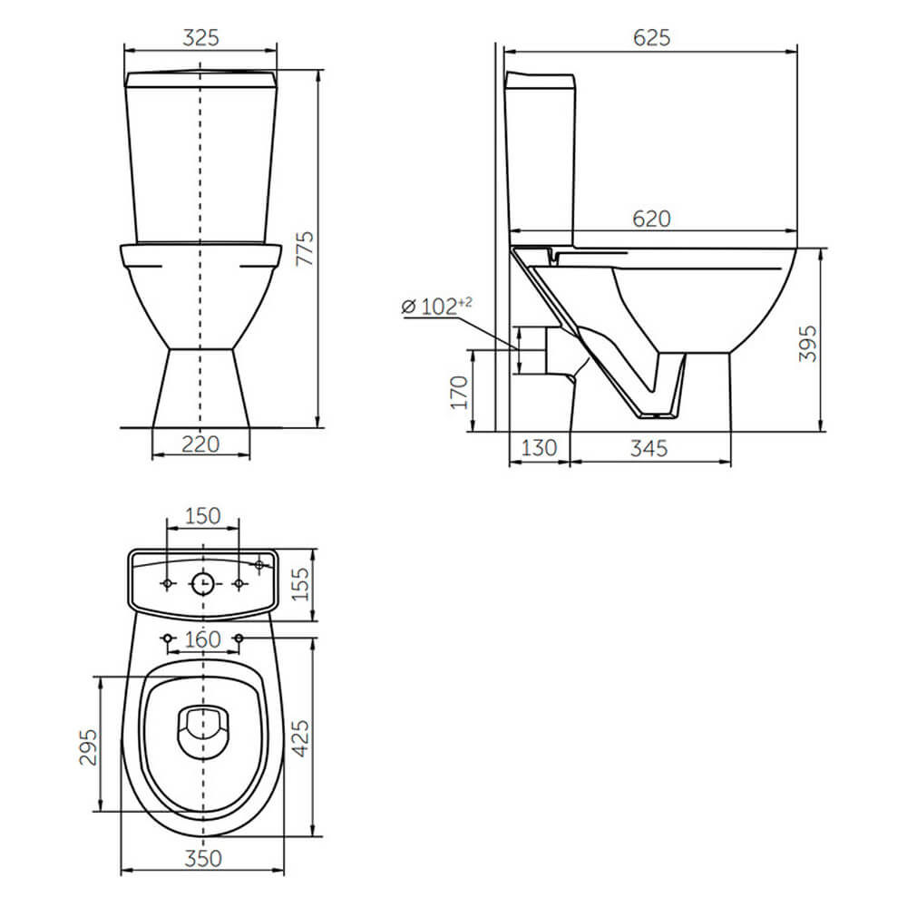 Чаша унитаза, бачок, крышка-сиденье, монтажный комплект, инструкция