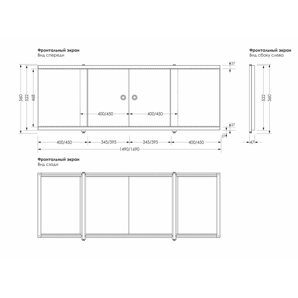 Раздвижной экран под ванну Метакам Купе 170 см, белый глянец