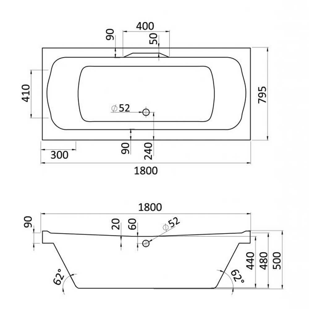 - Ванна изготовлена из 100% акрила с армированием стекловолокном для прочности и жёсткости