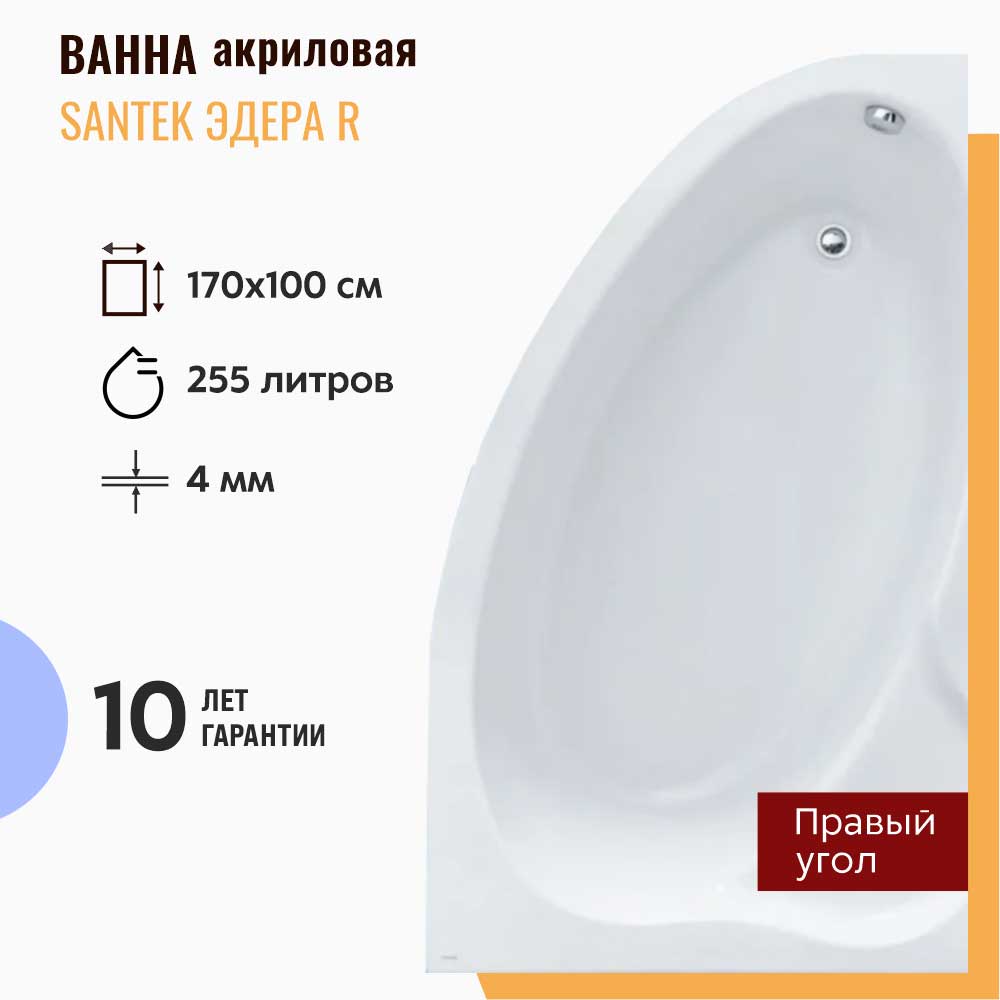 - Ванна долго сохраняет тепло благодаря низкой теплопроводности материала – 100% акрила, армированного стекловолокном