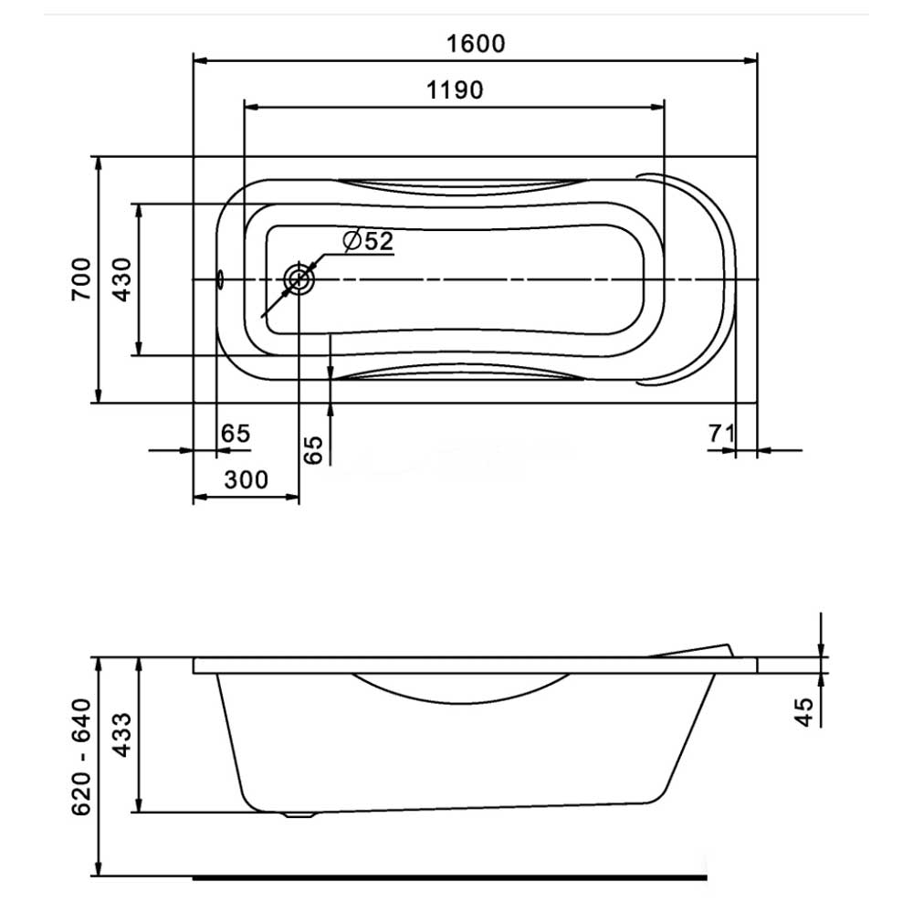 - Ванна изготовлена из 100% акрила с армированием стекловолокном для прочности и жёсткости