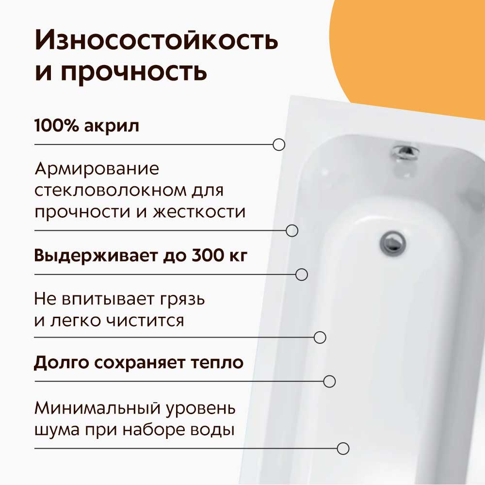 - Ванна долго сохраняет тепло благодаря низкой теплопроводности материала – 100% акрила, армированного стекловолокном